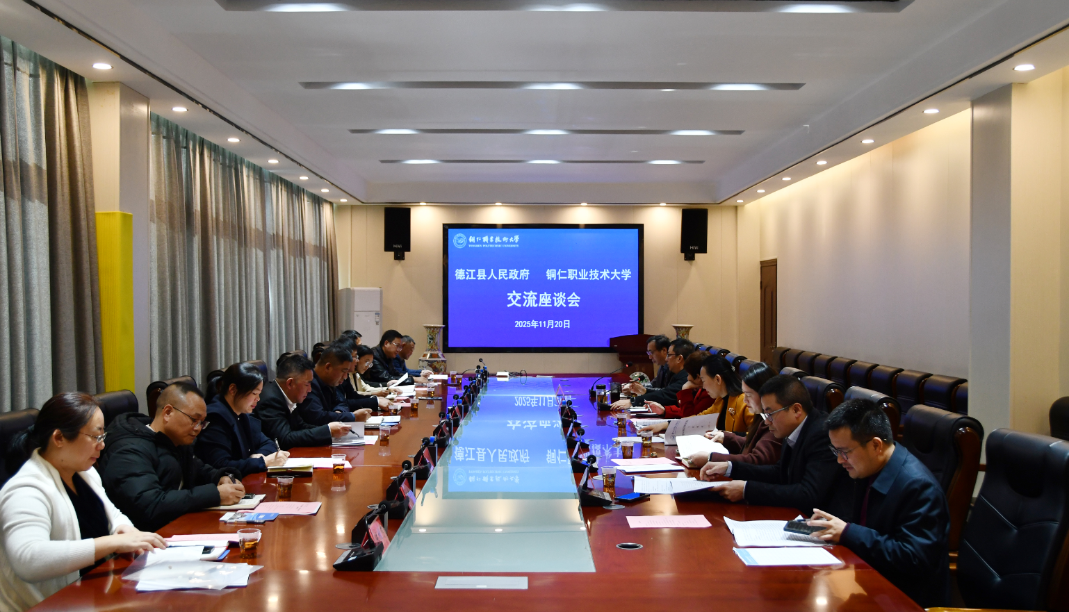 11月20日,德江县人民政府副县长覃进东,贵州工程职业学院党委书记陈健、董事长赵泽辉一行来我校考察交流。铜仁市教育局二级调研员杨玲,我校党委副书记杨海英,党委委员、副校长王锋,党委委员、组织人事部部长杨洋等领导及相关部门、二级学院负责人参加交流座谈会。会议由办公室主任罗刚主持。