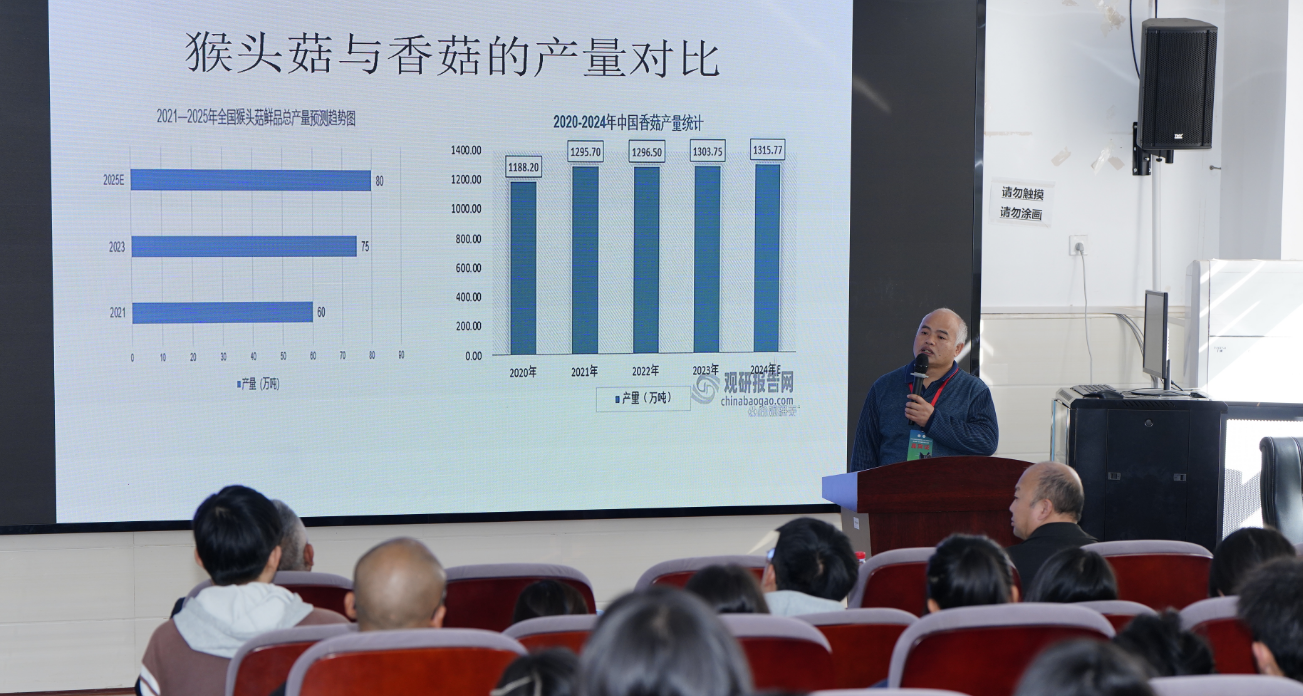 在主会场主题报告环节,多位国内行业权威专家带来了前沿研究成果及产业判断;谢宝贵教授(原福建农林大学)作《福建省食用菌产业转型升级和高质量发展情况及建议》专题报告;张介驰研究员(国家食用菌体系岗位科学家)介绍黑木耳栽培技术创新新进展;王勇教授(贵州大学)分享利用基因组系统发育学明确拟盘多毛孢类真菌分类界限的最新成果。专家们的学术报告视野开阔、内容扎实,为贵州食用菌产业科技发展提供了宝贵经验与新思路。