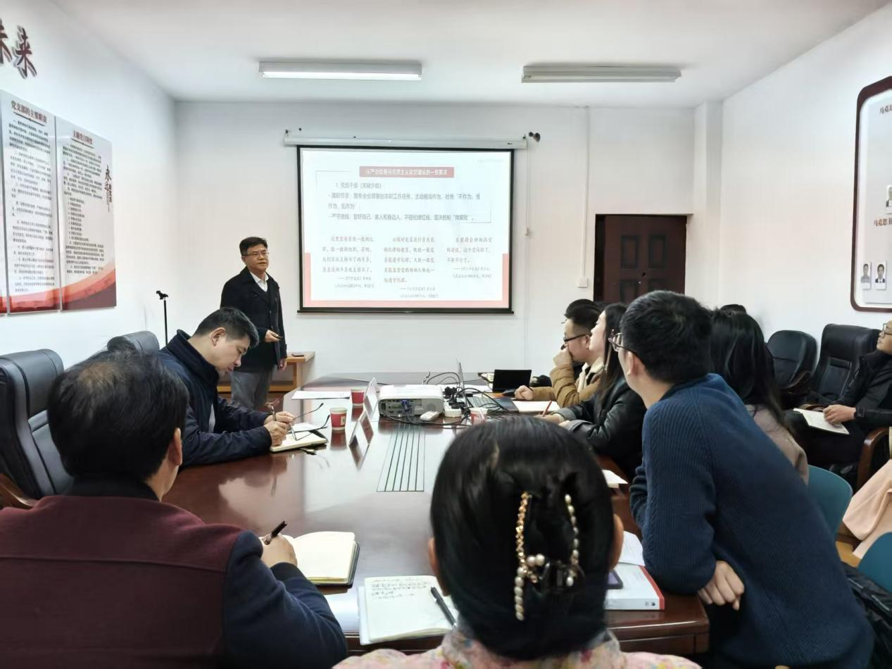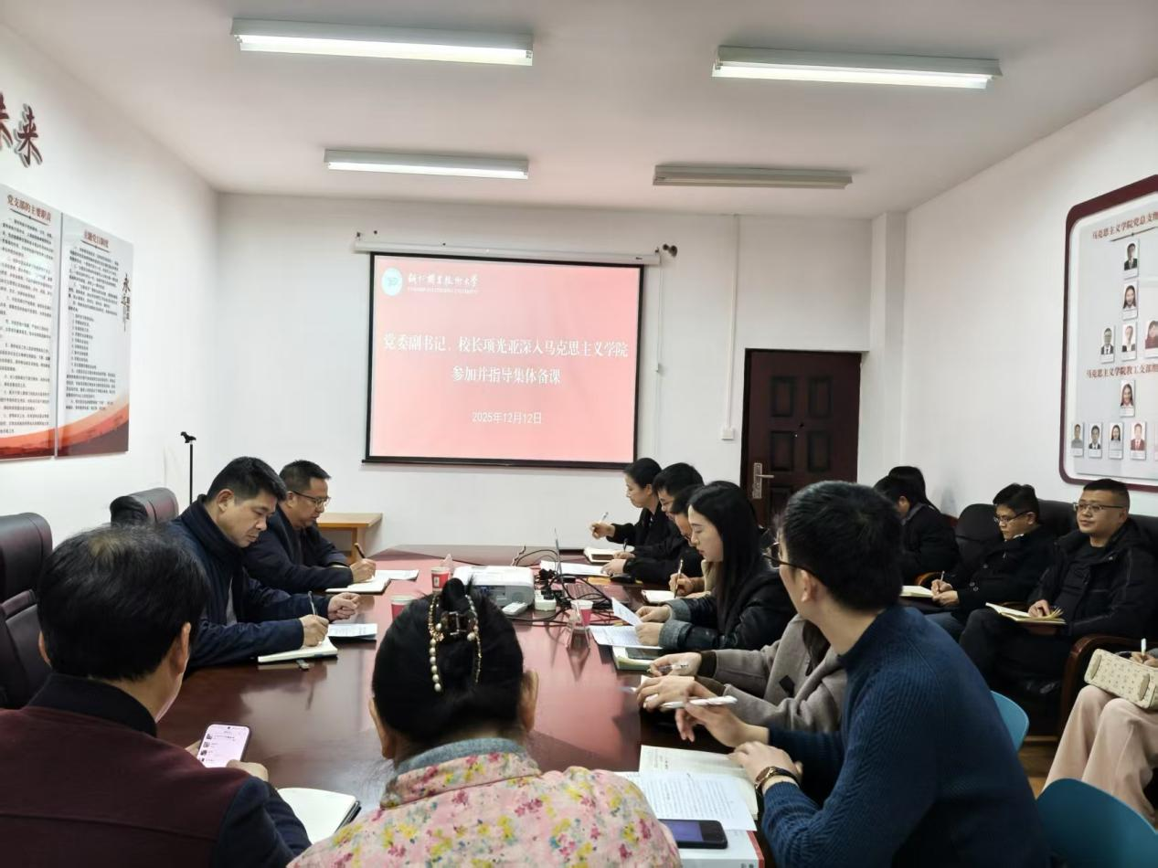 2025年12月12日下午,党委副书记、校长项光亚参加并指导马克思主义学院集体备课会,党委委员、副校长王锋,党委办公室主任舒高攀陪同,马克思主义学院无课教师参加。