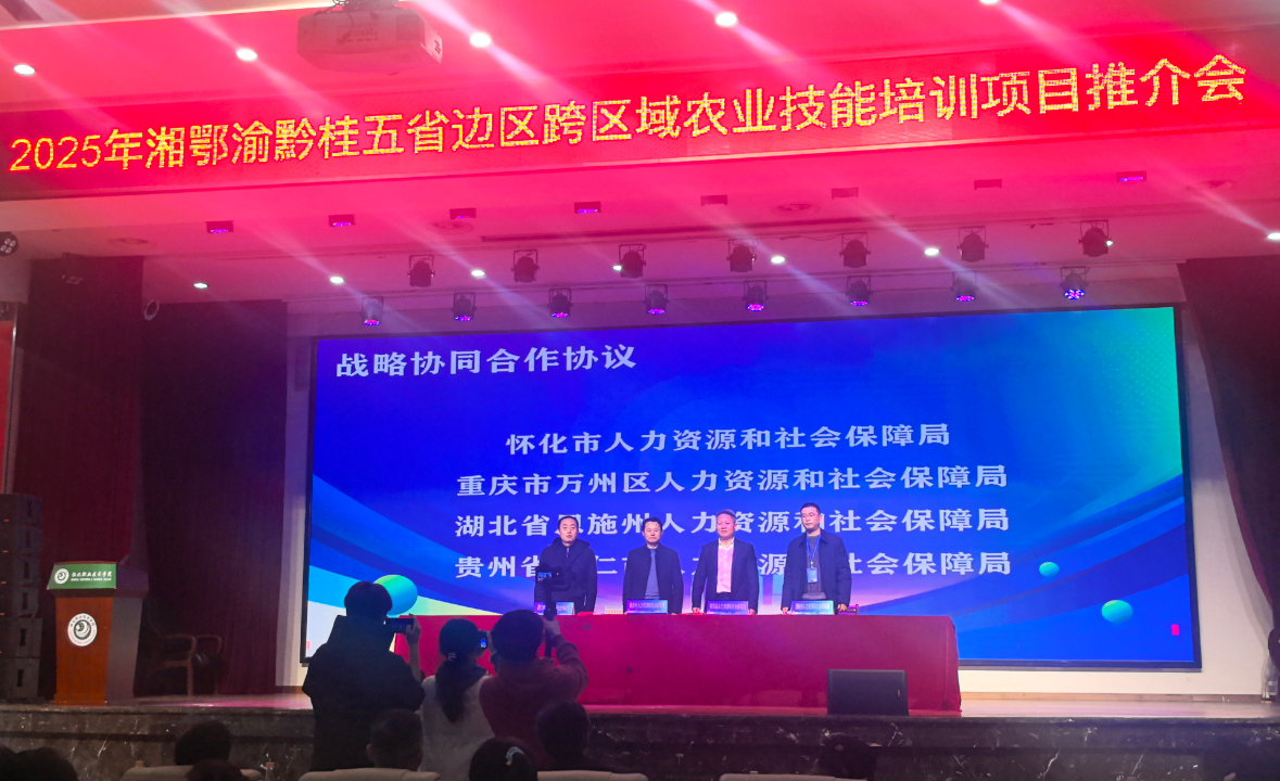 12月18日,2025年湘鄂渝黔桂五省边区跨区域农业技能培训项目推荐会在湖南怀化职业技术学院举行。我校党委副书记、校长项光亚和校领导朱锋钊出席会议,学校办公室、继续教育学院、药学院负责同志参加会议。