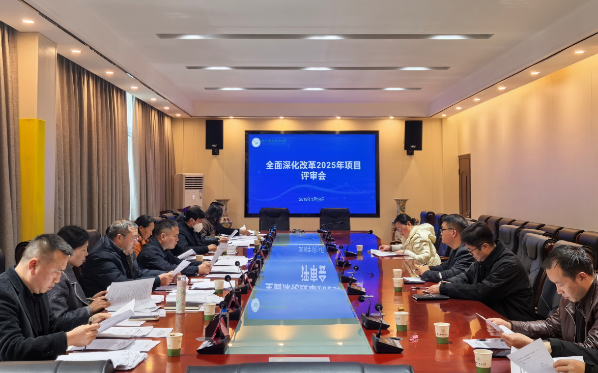 2026年1月14日下午,学校在行政楼三楼会议室召开全面深化改革2025年项目结项评审会。校党委副书记杨海英出席会议并讲话。校内评审专家、各一级项目组负责人及相关参与单位人员参加会议。会议由学校党委办主任舒高攀主持。