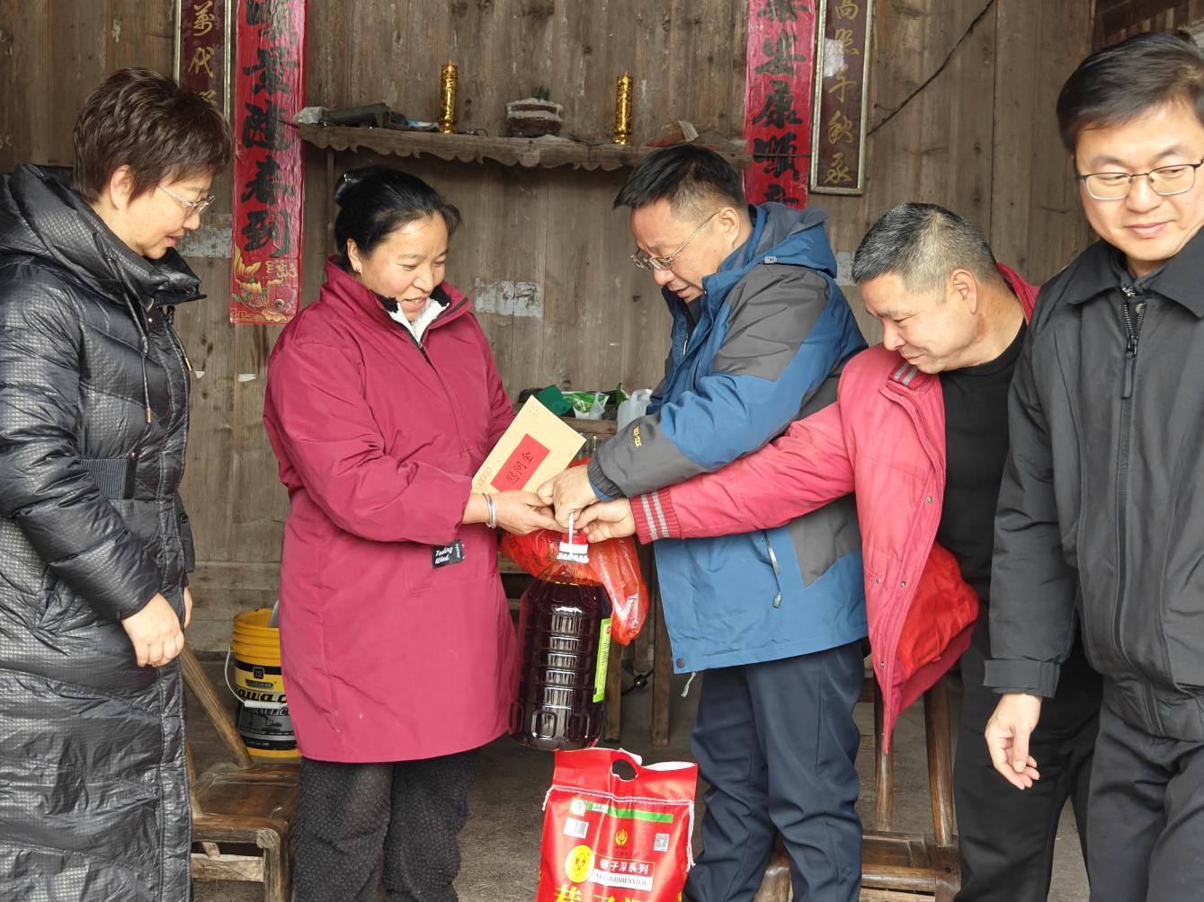 座谈结束后,邓庆生一行深入三个村的困难群众家中走访慰问,把关怀与温暖送到群众心坎上。每到一户,邓庆生都亲手为群众送上慰问金、大米、食用油等物资,与群众促膝而谈,关切询问家庭收入来源、家庭成员健康状况、子女就学就业等实际情况,认真记录群众的所思所想所盼,鼓励大家坚定生活信心,依托村里的特色产业勤劳肯干、增收致富,用双手创造更加美好的生活。
