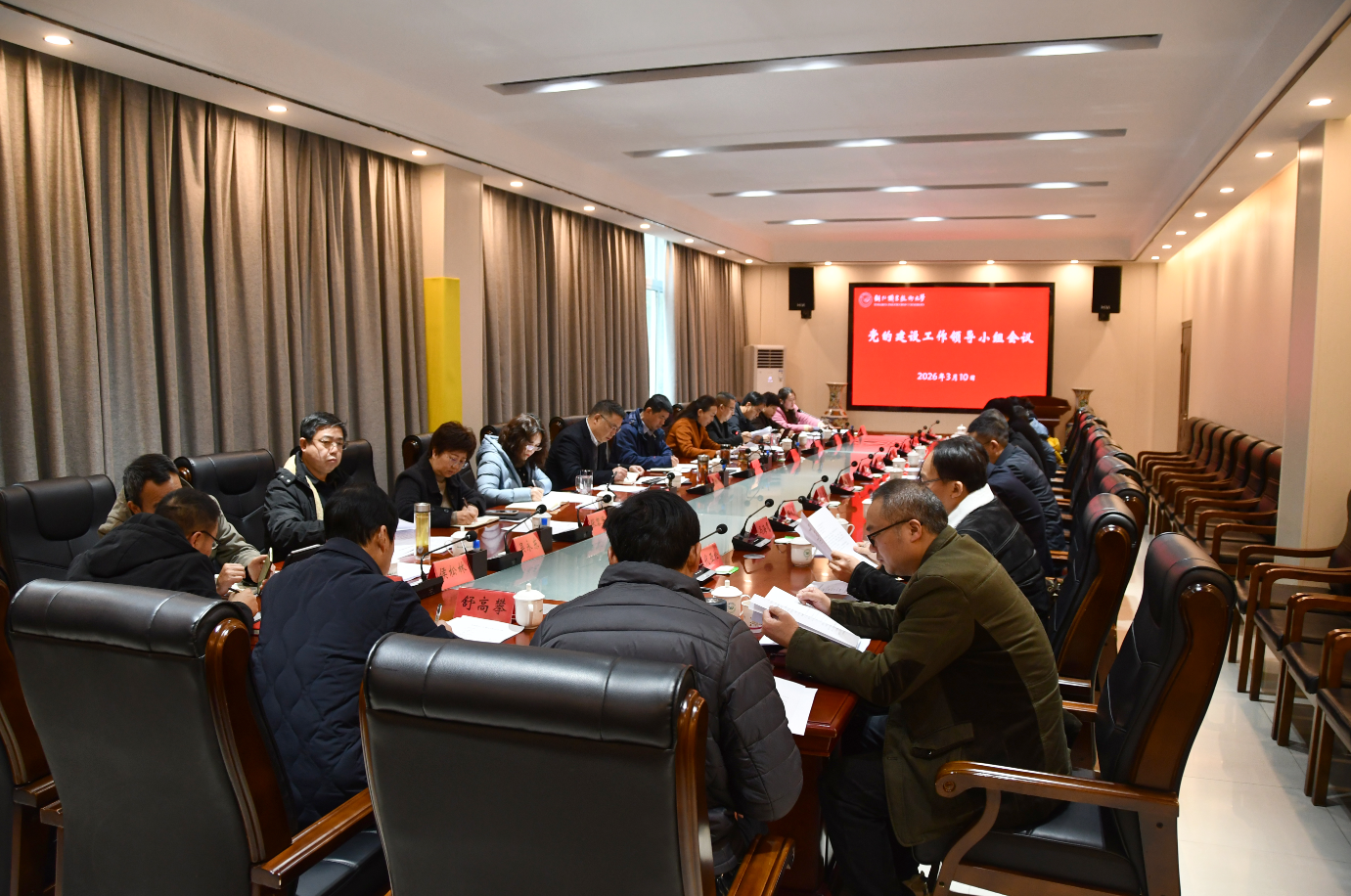 3月10日,铜仁职业技术大学召开党的建设工作领导小组会议,深入学习习近平总书记关于树立和践行正确政绩观的重要论述和重要指示精神,部署启动学校树立和践行正确政绩观学习教育工作。学校党委副书记、校长项光亚及在家领导班子成员出席,党委副书记杨海英主持会议。党的建设领导小组成员、各职能部门负责人、各党总支书记参加会议。