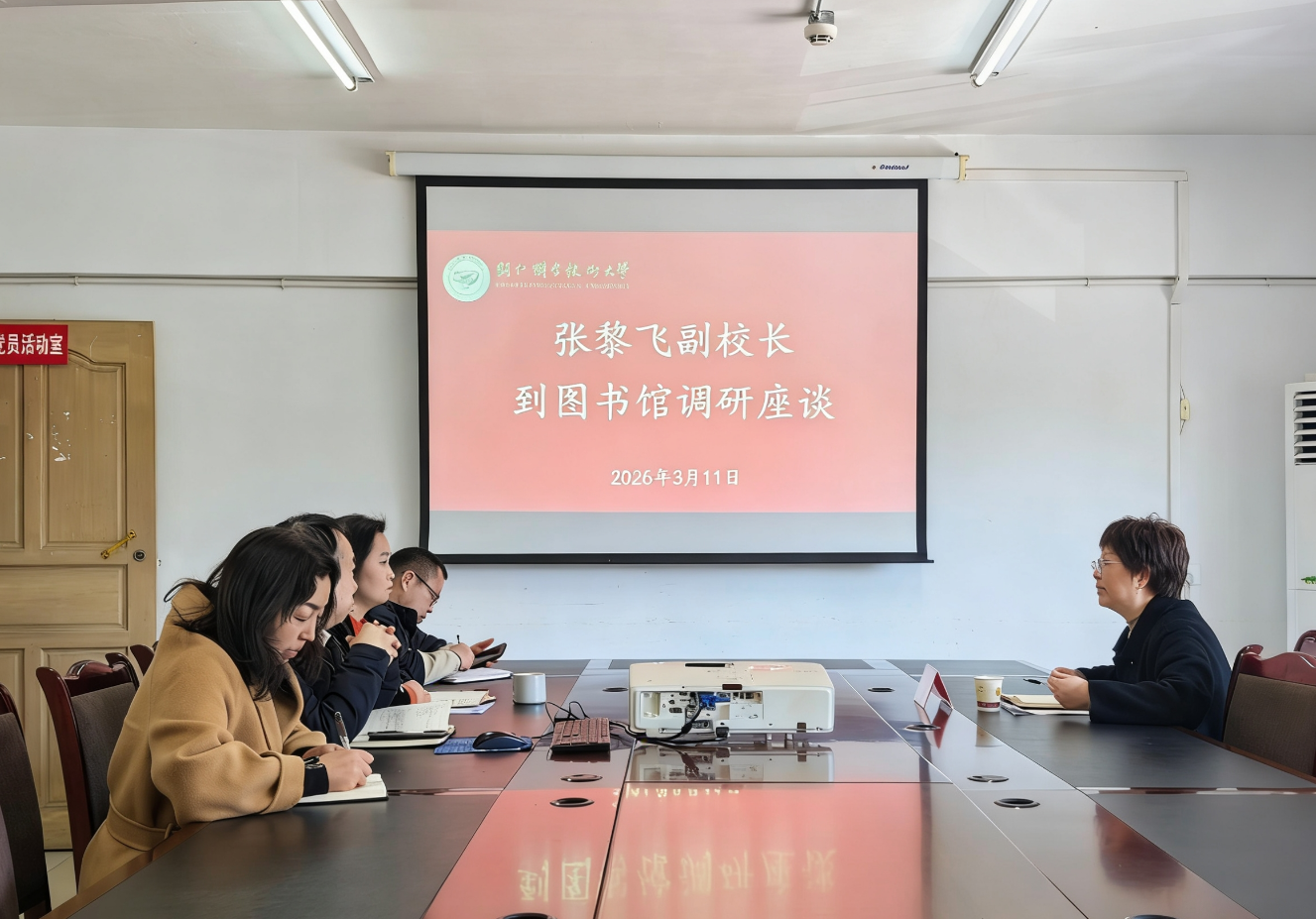 为深入贯彻落实学校关于文化育人、服务教学科研的要求,推动图书馆高质量发展,张黎飞副校长于3月11日下午赴图书馆开展专题调研。会议由田姜妹馆长主持,图书馆领导班子参会。会议聚焦图书馆资源建设、服务创新、空间优化等核心议题,通过实地考察、工作汇报与互动交流,为图书馆未来发展锚定方向、凝聚共识。
