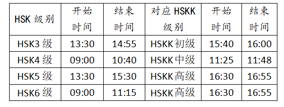 3.HSK6级的考生须考1天(HSK6级在上午,对应的HSKK高级在下午),其他级别考生只需一个上午或下午即可完成全部考试。