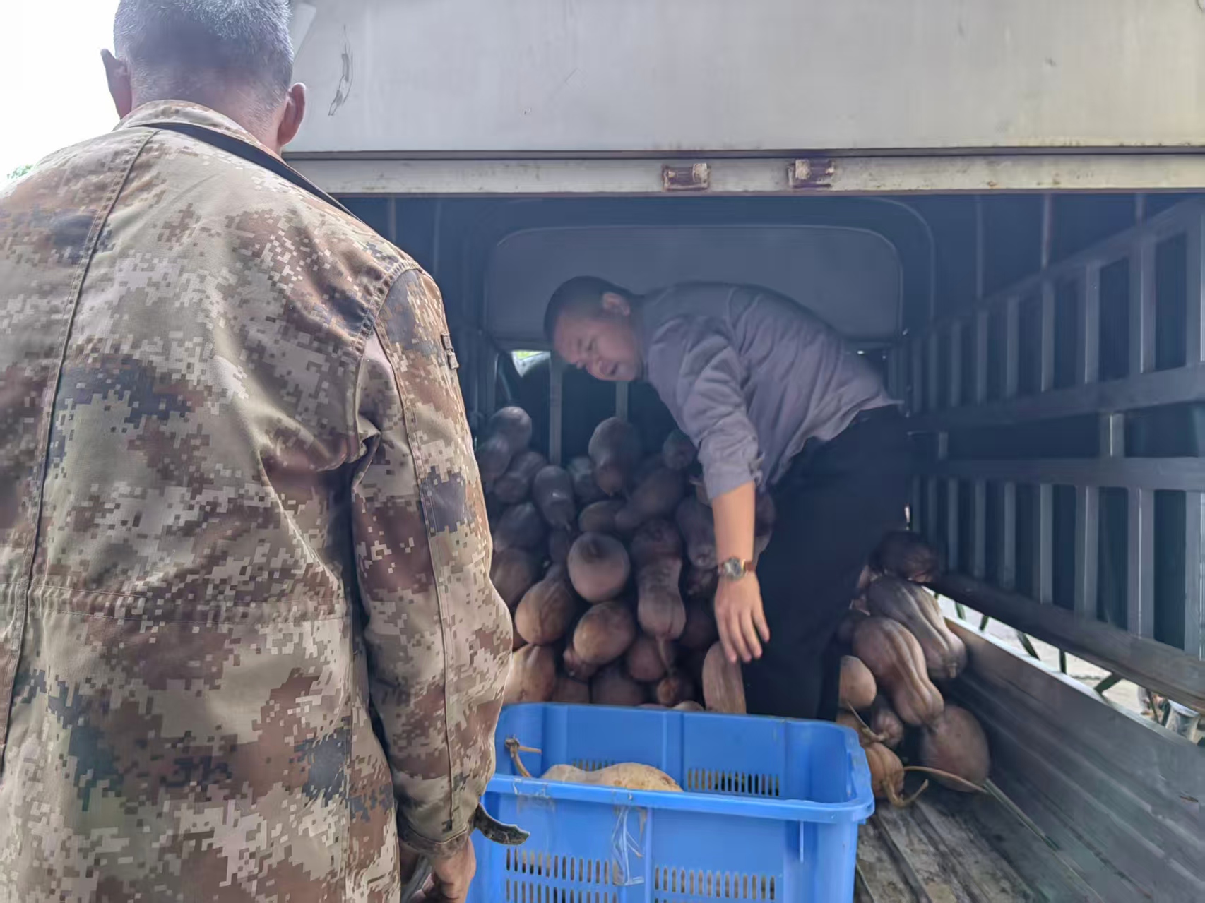 “群众的困难就是我们的牵挂!”后勤部部长龙再兴当场协调学校食堂,结合校园食材采购需求,确定了南瓜收购方案:学校食堂直接采购南瓜用于师生餐食供应,同时,还现场指导村民分类分拣南瓜,协助联系运输车辆,确保滞销南瓜“出村入户”。