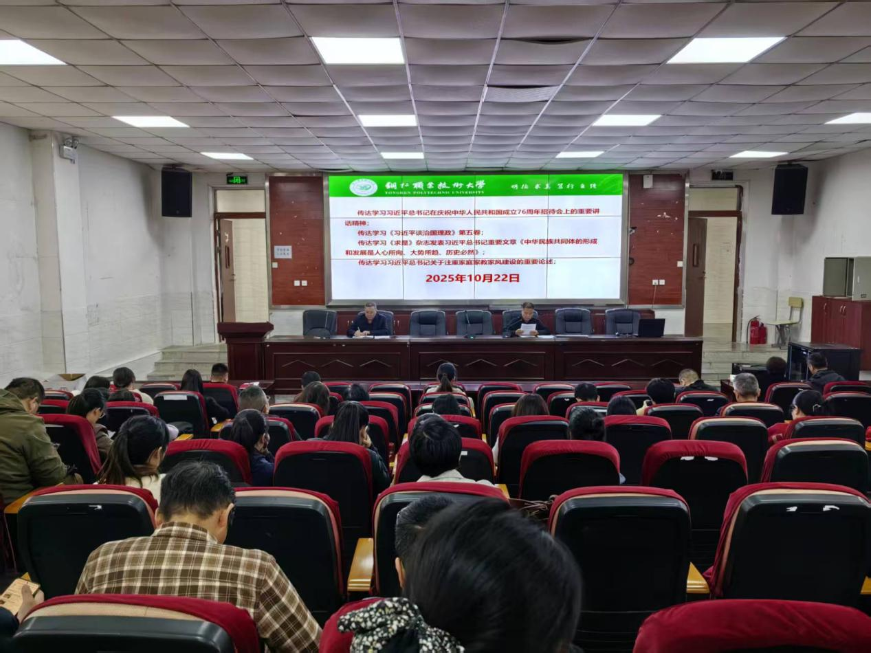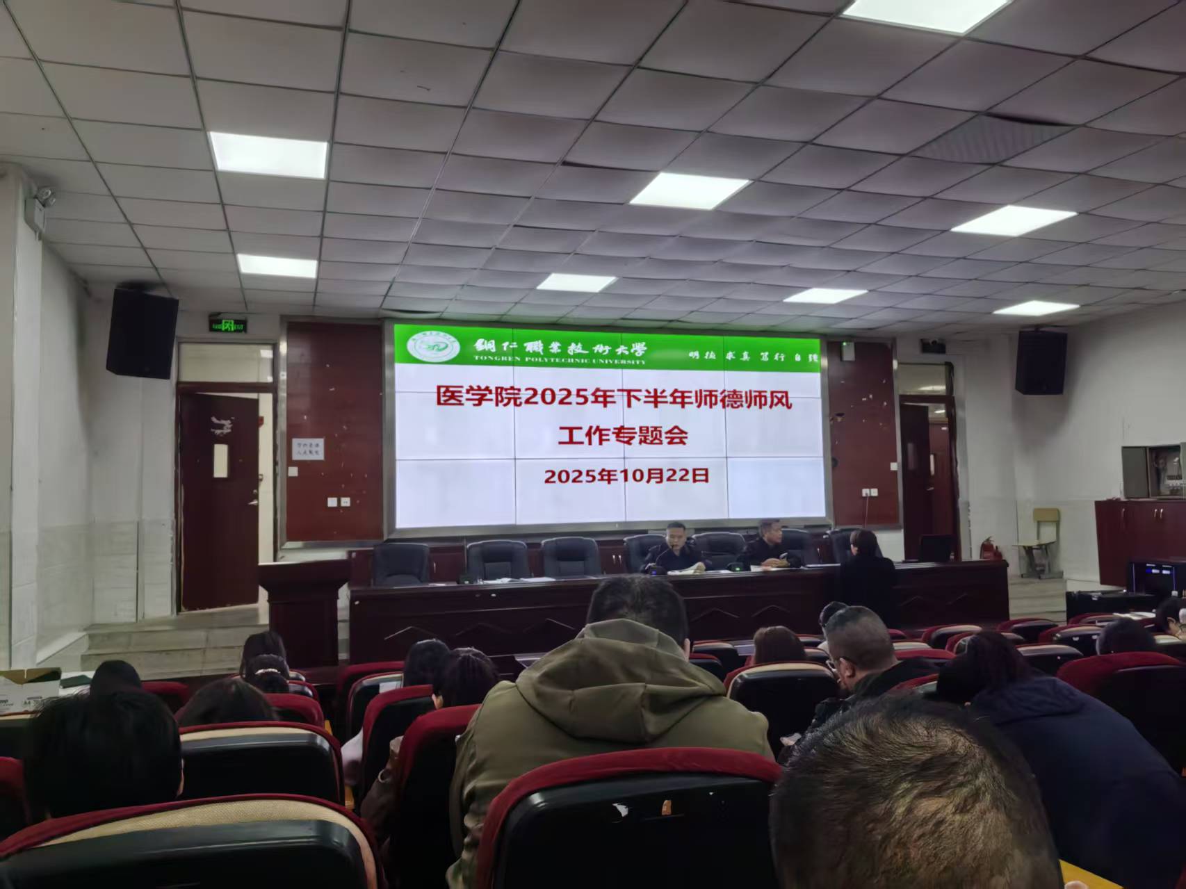 为深入贯彻落实《铜仁职业技术学院2025年师德师风专项整治行动工作方案》要求,进一步强化师德师风专项教育,加强教师队伍建设,10月22日,医学院召开2025年下半年师德师风建设专题会议,全体教职工参加会议。