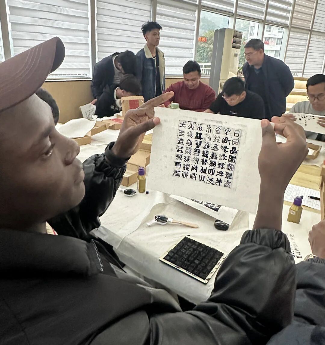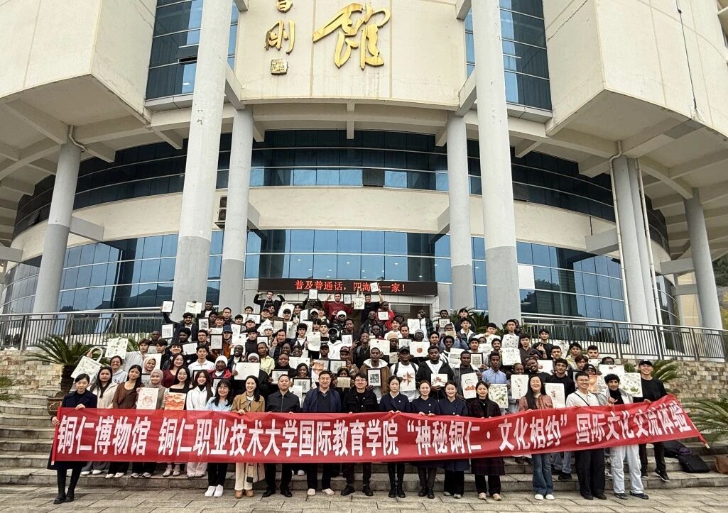 活动尾声,留学生们手举自己的作品合影,拓印着植物脉络的帆布包、印着傩对联文字的活字印刷品、散发着东方红的朱砂画。笑容是他们共同的语言,见证这次跨越文化的友好交流。古老铜仁文化,在互动中焕发新生!