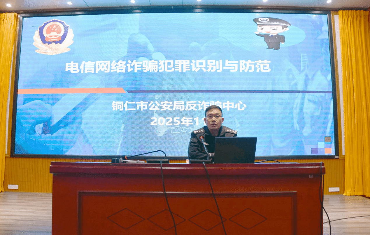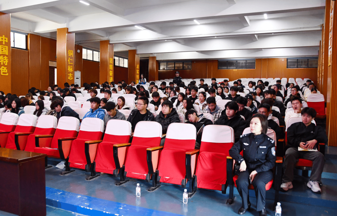 庭审结束后,铜仁市公安局反诈中心鲁警官紧接着开展防范电信网络诈骗专题讲座。鲁警官结合当前高发的刷单返利、冒充客服、校园贷等诈骗类型,通过拆解真实案例、亲身讲述奔赴云南边境抓捕、播放反诈视频、现场互动问答等形式,详细讲解了诈骗分子的作案手法与新型套路。同时,针对师生群体的认知特点,重点强调了“不轻信、不透露、不转账”的反诈原则,手把手指导大家安装使用“国家反诈中心”APP,提醒师生妥善保管个人身份证、银行卡及手机卡,从源头杜绝成为电信网络诈骗“工具人”的可能。