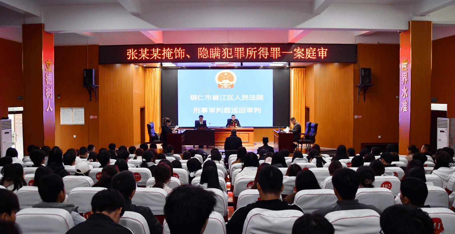 为切实提升师生法治意识,筑牢防范电信网络诈骗及“两卡”犯罪的安全防线。2025年11月4日上午,我校特邀铜仁市公安局、铜仁市“131”机制办、碧江区人民法院、铜仁市碧江公安分局、铜仁市碧江公安分局文昌派出所在铜仁职业技术大学寅亮厅组织开展法治教育系列活动。全校各职能部门代表、各二级学院师生代表共计300余人现场参与,通过“庭审观摩+专题宣讲”的沉浸式学习模式,接受了一堂深刻的法治教育课。