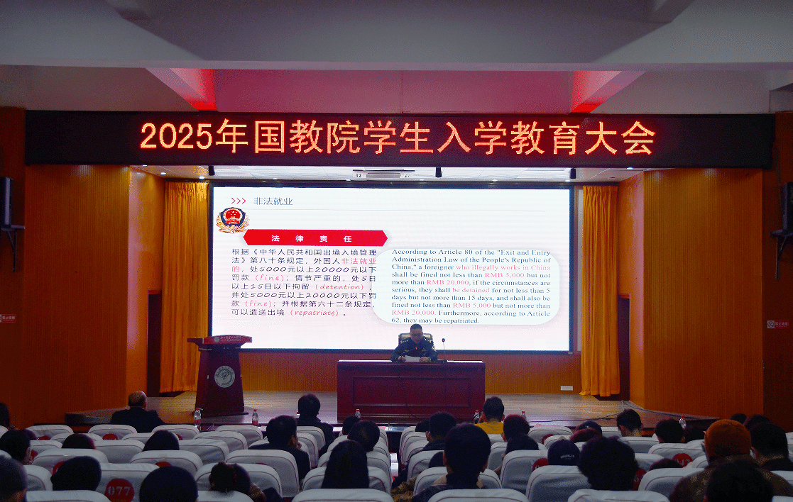 近日,随着来自全球33个国家的110余名国际新生顺利完成秋季学期入学报到,我院国际学生大家庭再添新活力。为帮助新生深入理解中国法律法规与校园文化,强化安全意识,顺利开启在华学习新篇章,11月5日,我院在寅亮厅举行了一场内容丰富、形式创新的国际学生入学教育大会。国际教育学院党总支书记代亚松、铜仁市出入境管理支队副支队长杜河,以及教务科、学生科、国际中文教师代表共同出席。
