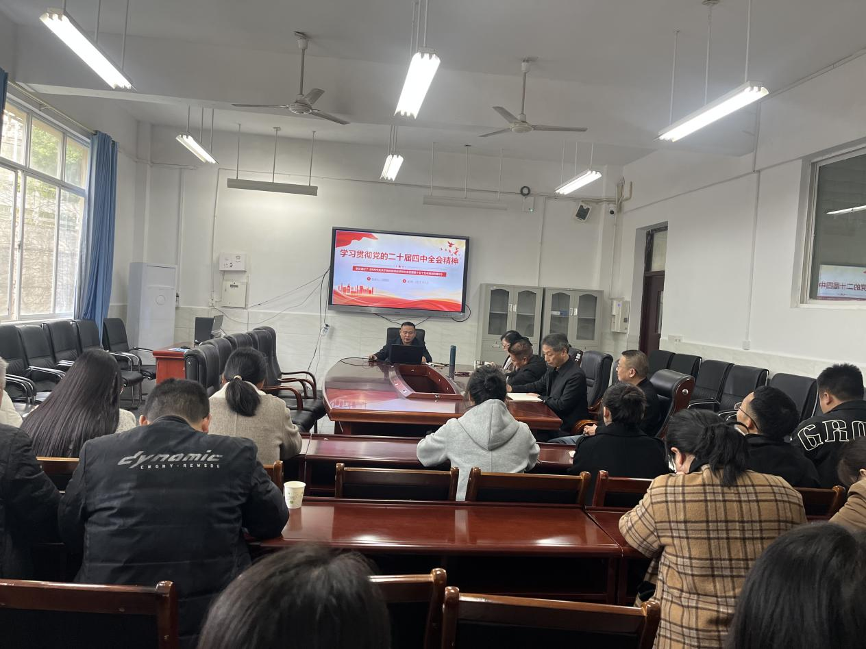 11月12日,医学院党总支书记胡国兵在善学楼203会议室为教工党支部、学工党支部39名党员宣讲党的二十届四中全会精神暨讲专题党课。