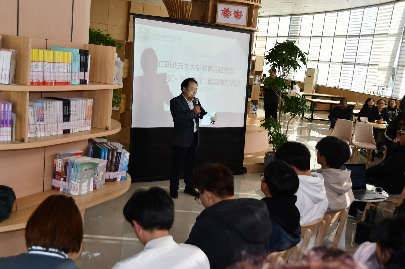 11月26日下午,铜仁职业技术大学教育园区图书馆暖意融融,2025年度“书香园行·阅读青春”活动第二站在此举行。本次活动聚焦主题分享、阅读交流、趣味竞猜等环节,为师生搭建了一场温暖走心的阅读盛宴。图书馆副馆长蒋芳华、图书馆全体馆员及各二级学院师生代表参与活动。
