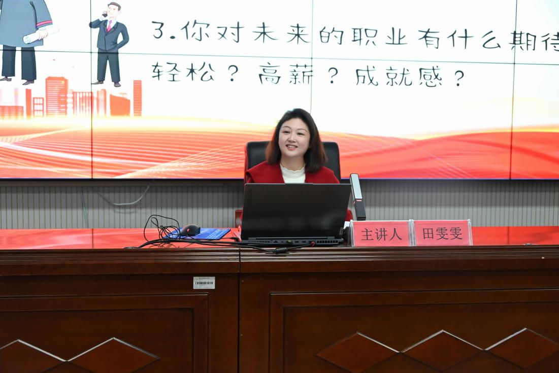 交流会上,田雯雯从全会精神内涵切入,结合“十五五”规划目标,生动解读了国家发展蓝图与青年学生职业选择、技能提升的紧密联系。“大家心中的‘理想饭碗’是什么模样?”“专业技能如何对接国家需求?”等, 田雯雯以一连串贴近学生生活的提问引发共鸣,现场学生踊跃发言,分享对未来职业的期待与困惑。