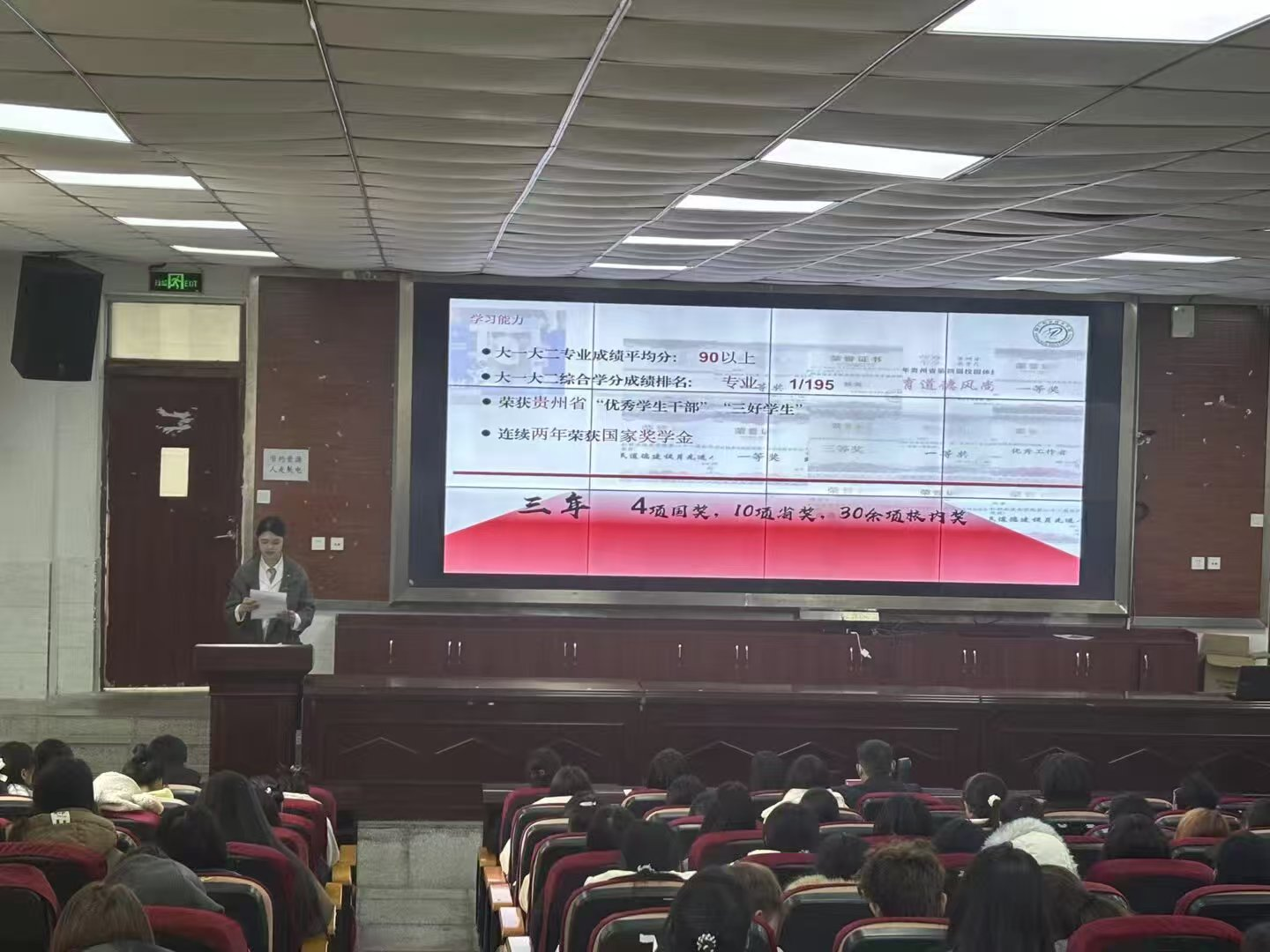 243临床1班徐世丹以《千里逐梦·砺心行医》为题,从一句“辞家千里又千里,务必争气再争气”这句朴素却滚烫的话语开始,道出了无数远行学子的心声,讲述她从青藏高原到黔东校园的奋斗旅程,带着对医学的赤诚,跨越千山万水,在铜仁职大这片沃土上默默扎根。学业上,她荣获国家励志奖学金和多项竞赛奖项,诠释了何为“争气”;工作中,从班干部到学生会主席,在服务同学中锤炼责任与担当;实践中,她走进松桃地容村,把专业知识化作守护乡亲健康的微光;她的故事勉励同学们:真正的奋斗,不是追逐光环,而是让青春在奉献中闪光。