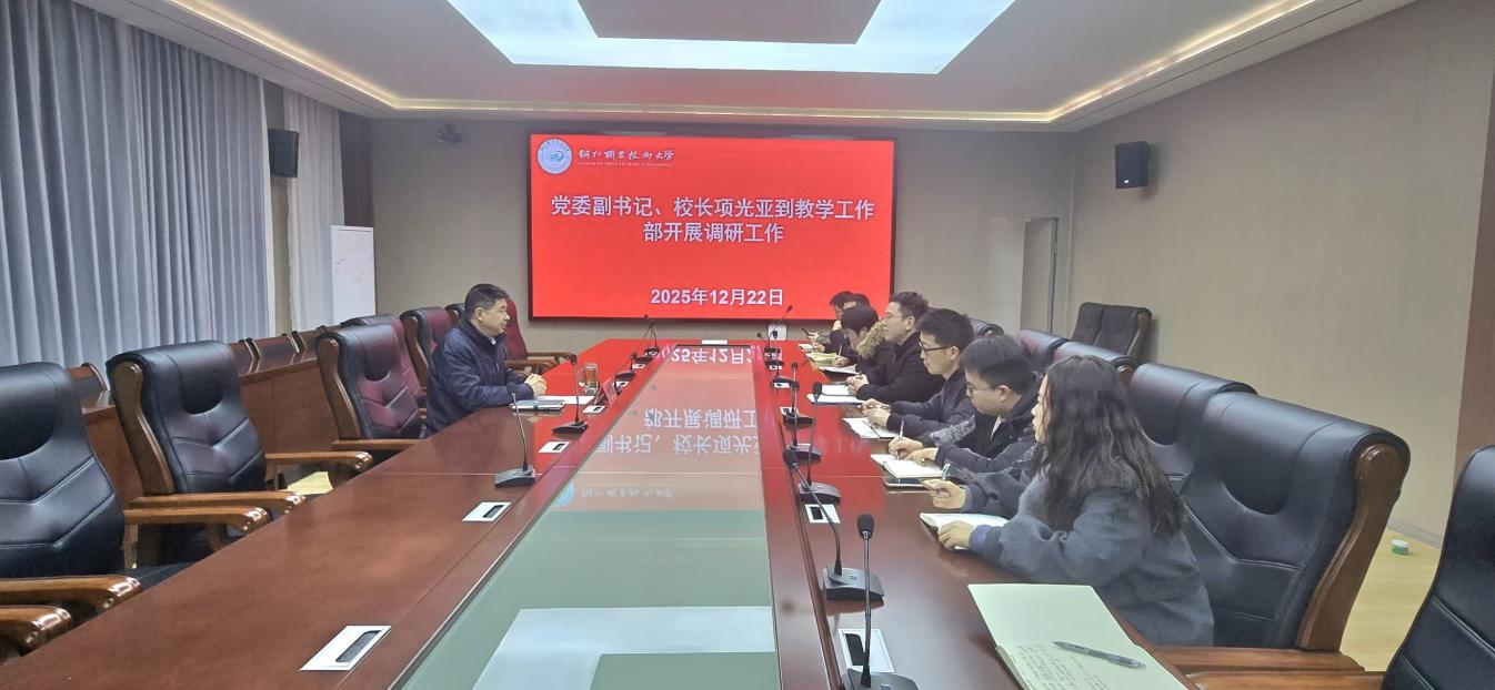 12月22日下午,学校党委副书记、校长项光亚在行政楼一楼1号会议室召开教学工作调研座谈会。教学工作部部长侯宇、副部长廖晓琼、戚敏及各科室负责人参会。