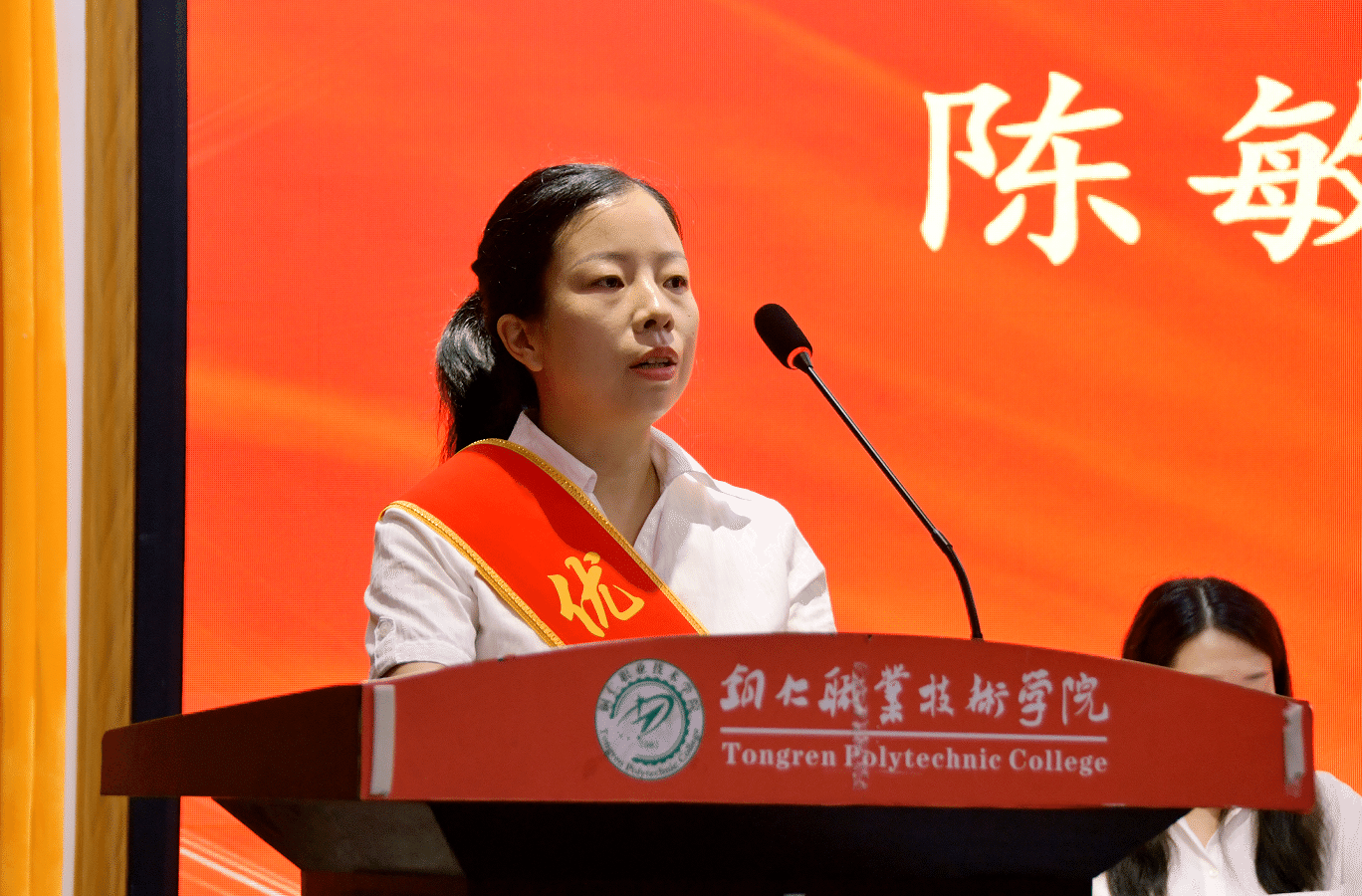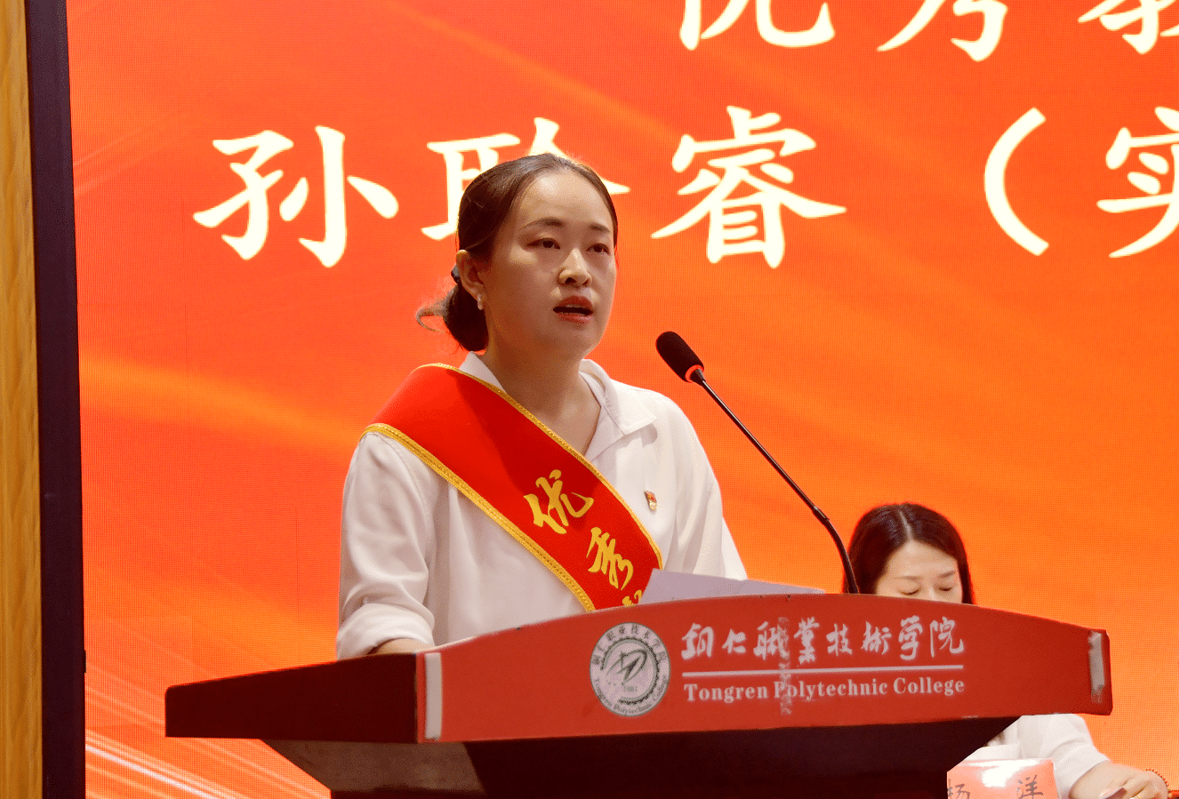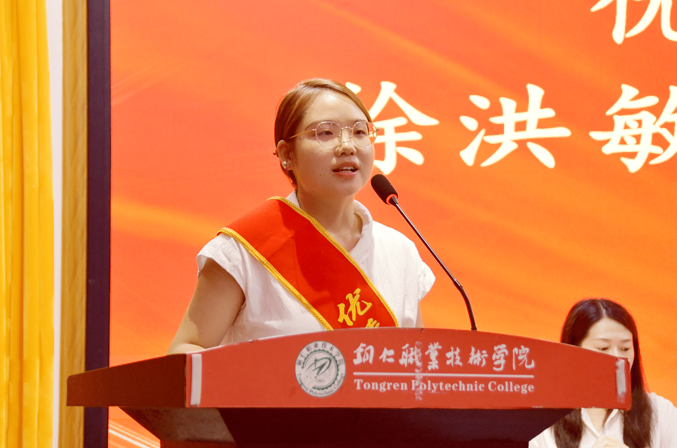 师德楷模代表张荣芳教授回顾了从工程师转型教师的九年历程,讲述了带领学生参与技能竞赛、扎根乡村建设的经历和怀孕八月仍带队参赛、产后两月赴省外备赛的经历。她说,师德不仅在讲台,更在服务家乡的每一寸土地上,未来她将继续以匠心育匠人,助力职业本科建设。优秀教师代表陈敏分享了她潜心教学科研的经历和成果,表示将以学校升为职业本科、入选第二轮“双高计划”为契机,持续探索职业本科人才培养新模式,夯实学生理论与实践能力,为学校培养更多高层次人才。优秀教育工作者代表孙聆睿讲述了她在双高办、实验实训中心等多个岗位的奋斗故事,她表示未来将继续在实践教学领域夯实根基,为学生成才铺路。优秀辅导员代表徐洪敏分享了班级管理与实践育人经验,提及所带班级获评“五四红旗团支部”、指导学生获省级竞赛金奖的经验,承诺将继续“以初心为灯、以责任为径”,做学生成长的同行者和引路人。