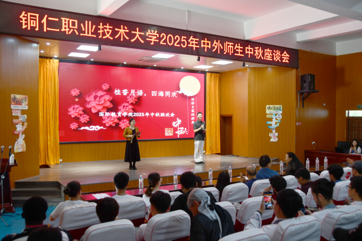 9月28日,在中秋佳节来临之际,铜仁职业技术大学国际教育学院举办“桂香月语 四海同欢”2025年中外师生中秋节联欢会。学校党委副书记杨海英,国际教育学院领导班子成员、教师代表、药学院、信息工程学院部分中国学生代表以及来自26个国家的60余名国际学生欢聚一堂,共品中秋韵味,共话文化情谊,共度团圆佳节。