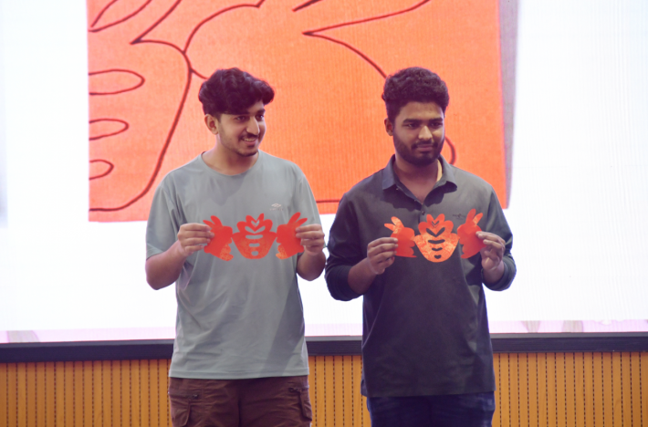 为让国际学生更好理解中秋文化,国际中文教研室杨诗琪老师以双语展开中秋文化讲解,关于中秋节的起源和文化内涵让同学们沉醉不已,抛出的灯谜让同学们踊跃举手,来自不同国家的学生用中文准确答出了谜底。现场还开展月兔剪纸文化体验活动。对折纸张、勾勒图案、小心裁剪……国际学生们跟着步骤认真操作,现场洋溢着动手实践的快乐。