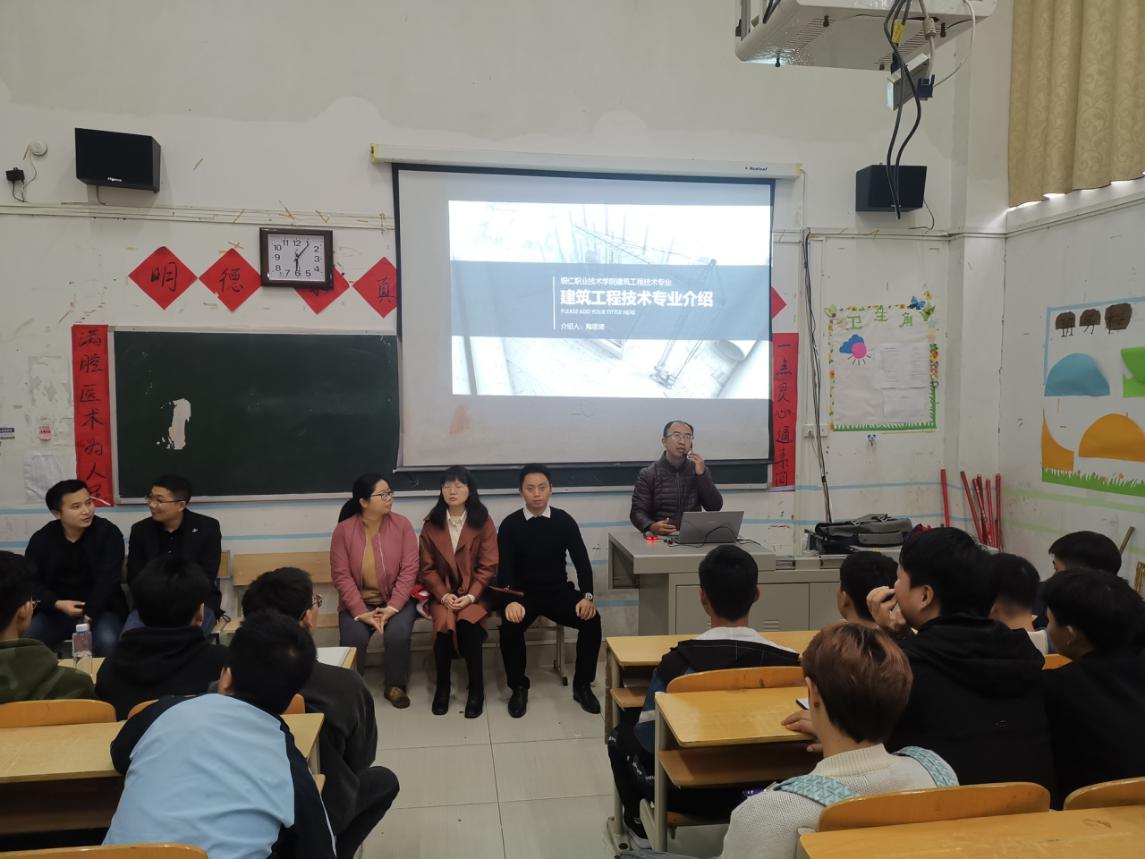 会上,陶思琦对职业教育的发展与趋势、建筑工程技术专业的发展、专业条件、师资力量、教学平台和就业方向等方面进行了介绍;就学生关心的问题、学生学习过中的常见误区及建筑工程技术专业人才培养方案作了详细的讲解说明。通过提出在校规划、人生规划等问题,引起学生对学习和职业生涯规划的思考;要求尽快明确自己的发展方向。最后,陶思琦,郭宾,高小飞对学生提出的问题做了解答。