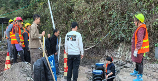 理论培训后,现场实操,紧盯施工细节。李干蓉副教授带队前往当地农村污水处理设施施工现场,针对管网铺设、检查井安装等环节进行实操指导,她结合现场的波纹管、施工工具,示范了管道衔接的规范流程,提醒施工人员注意坡度控制与防渗漏细节,同时解答了村民关于设施后期管护的疑问,确保技术落地“看得懂、用得上”。