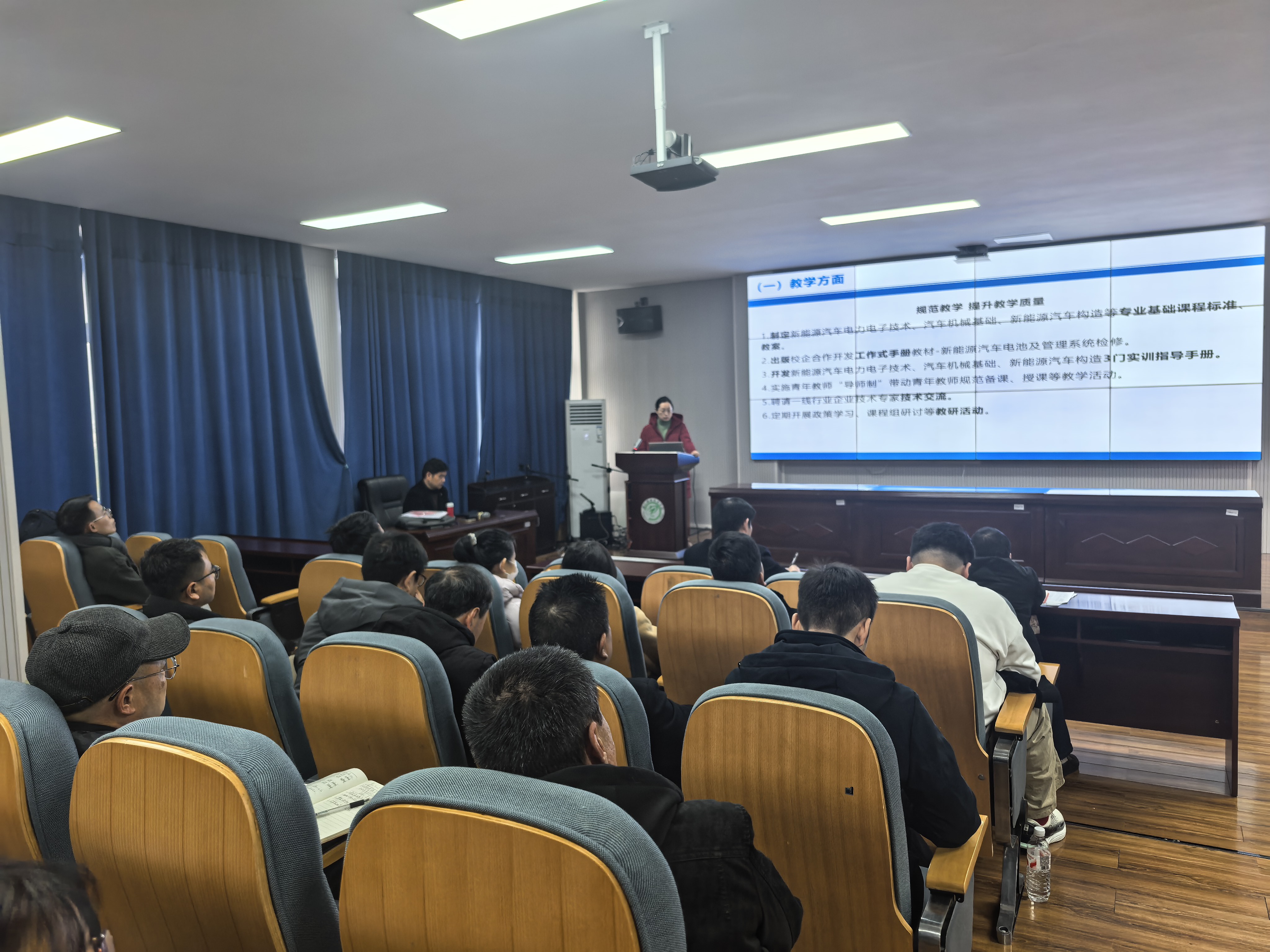1月16日上午9时,工学院在三楼学术报告厅组织召开了2025年度教研室工作总结汇报会。机电一体化技术教研室、建筑工程技术教研室、新能源汽车技术教研室、环境工程技术教研室及新能源材料技术教研室依次进行现场汇报,全面梳理过去一年的工作成果,剖析存在问题,并展望新一年的发展计划。工学院班子成员及全体教师参加了会议。