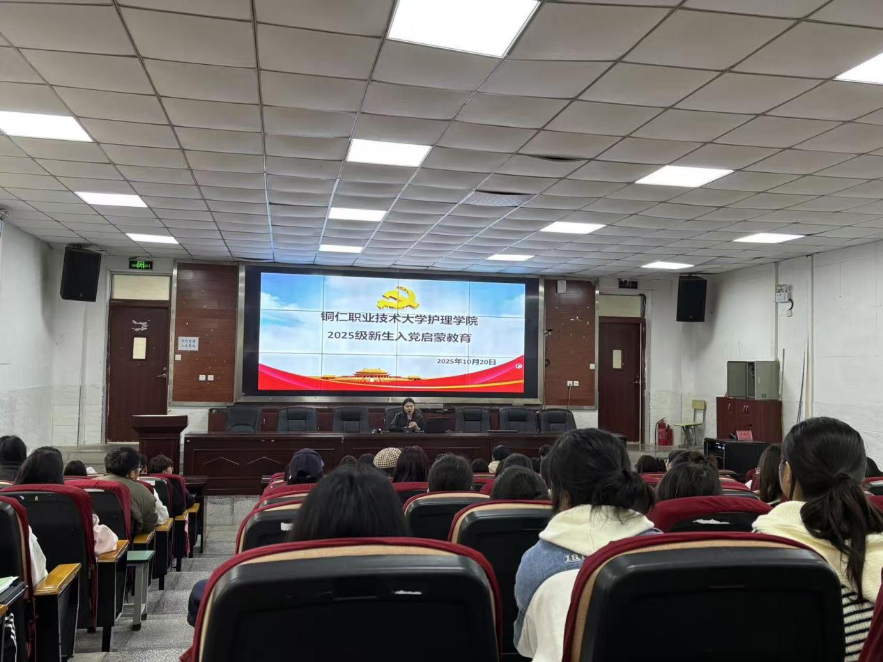 为加强新生思想政治引领,筑牢理想信念根基,引导广大新生积极向党组织靠拢。10月20日,护理学院在木秀坪校区开展了级2025级新生入党启蒙教育大会。会议由护理学院专职组织员、学工支部书记杨秋萍主持,2025级各班团支部书记及有入党志愿的新生,共计70余人参加。