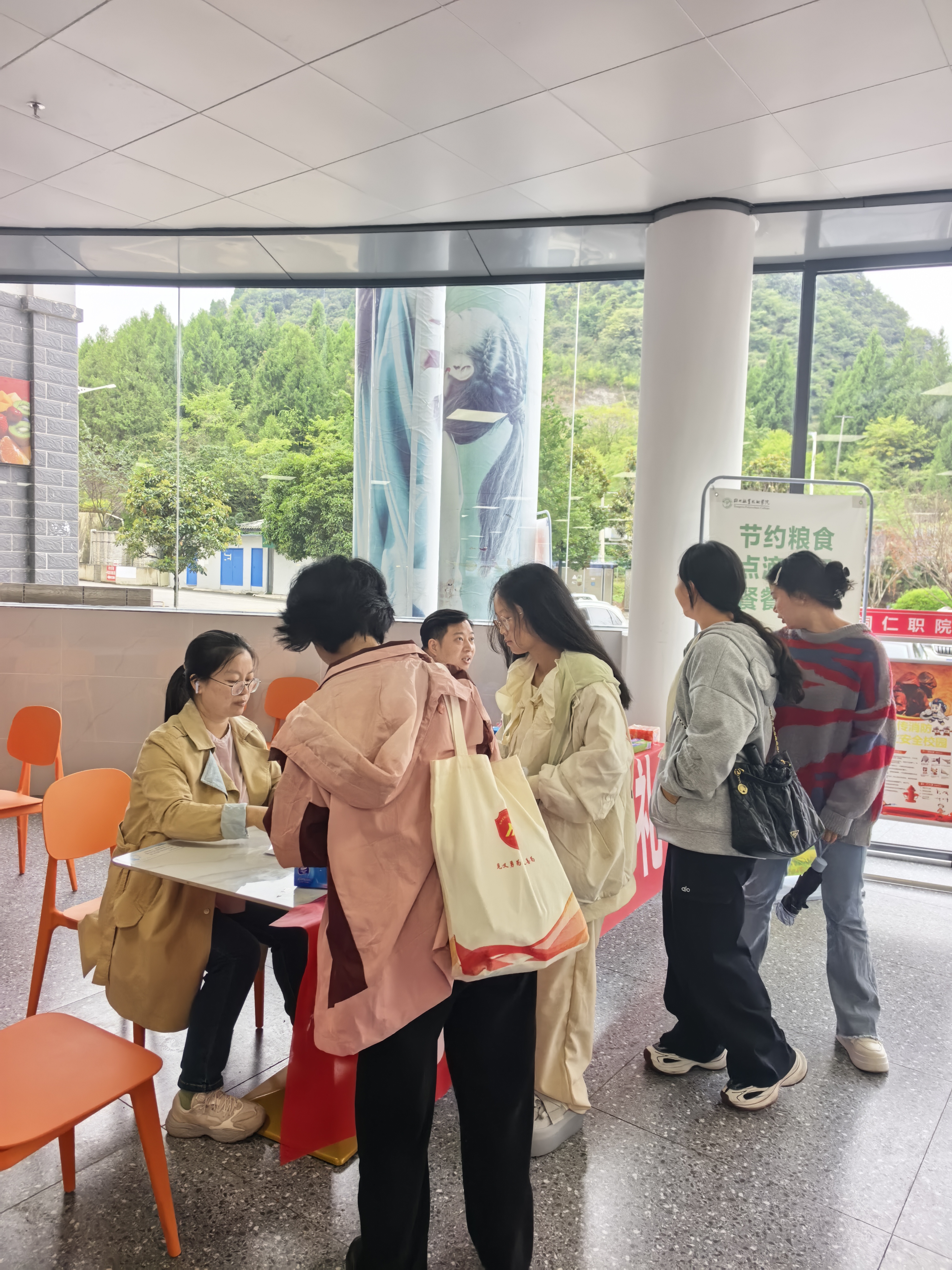 活动当天,后勤部工作人员还在食堂显眼位置设置了活动咨询台,向过往师生详细讲解活动规则:凡在活动期间前往食堂就餐,做到餐食“光盘”且无剩余浪费的师生,可凭空餐盘到咨询台领取一份小礼品,鼓励大家用实际行动践行节约理念。