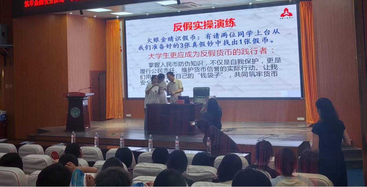 人民银行聂华军带来的《筑牢货币安全网,守好群众钱袋子》讲座,详细讲解了人民币防伪特征和鉴别技巧。现场设置的互动鉴别环节尤其受欢迎,同学们踊跃参与,通过实际操作掌握了识别假币的基本方法。
