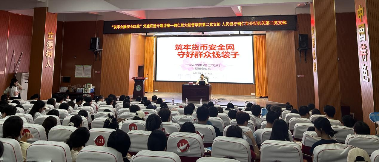 2025年9月17日下午,铜仁职业技术大学经济与管理学院第二党支部与人民银行铜仁市分行机关第二党支部联合举办“铸牢金融安全防线”主题党建联建活动。此次活动是贯彻落实维护金融安全重要精神的具体实践,旨在强化高校学生金融风险防范意识。活动依托全国高校“双带头人”教师党支部书记“强国行”专项行动框架,通过校银协同创新党建模式,将金融知识普及与思想政治教育深度融合,形成服务育人合力。