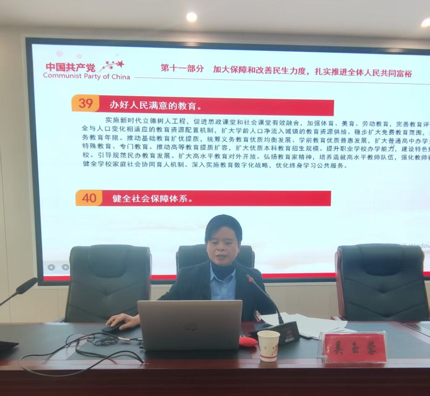会上,吴玉蓉围绕党的二十届四中全会召开情况、党的二十届四中全会精神主要内容、党的二十届四中全会精神为职业教育绘制的新蓝图等三个方面展开宣讲,其中对党的二十届四中全会审议通过的《中共中央关于制定国民经济和社会发展第十五个五年规划的建议》,从建设现代化产业体系,巩固壮大实体经济根基,加快高水平科技自立自强,引领发展新质生产力等十五个方面,对《建议》进行了深入解读。