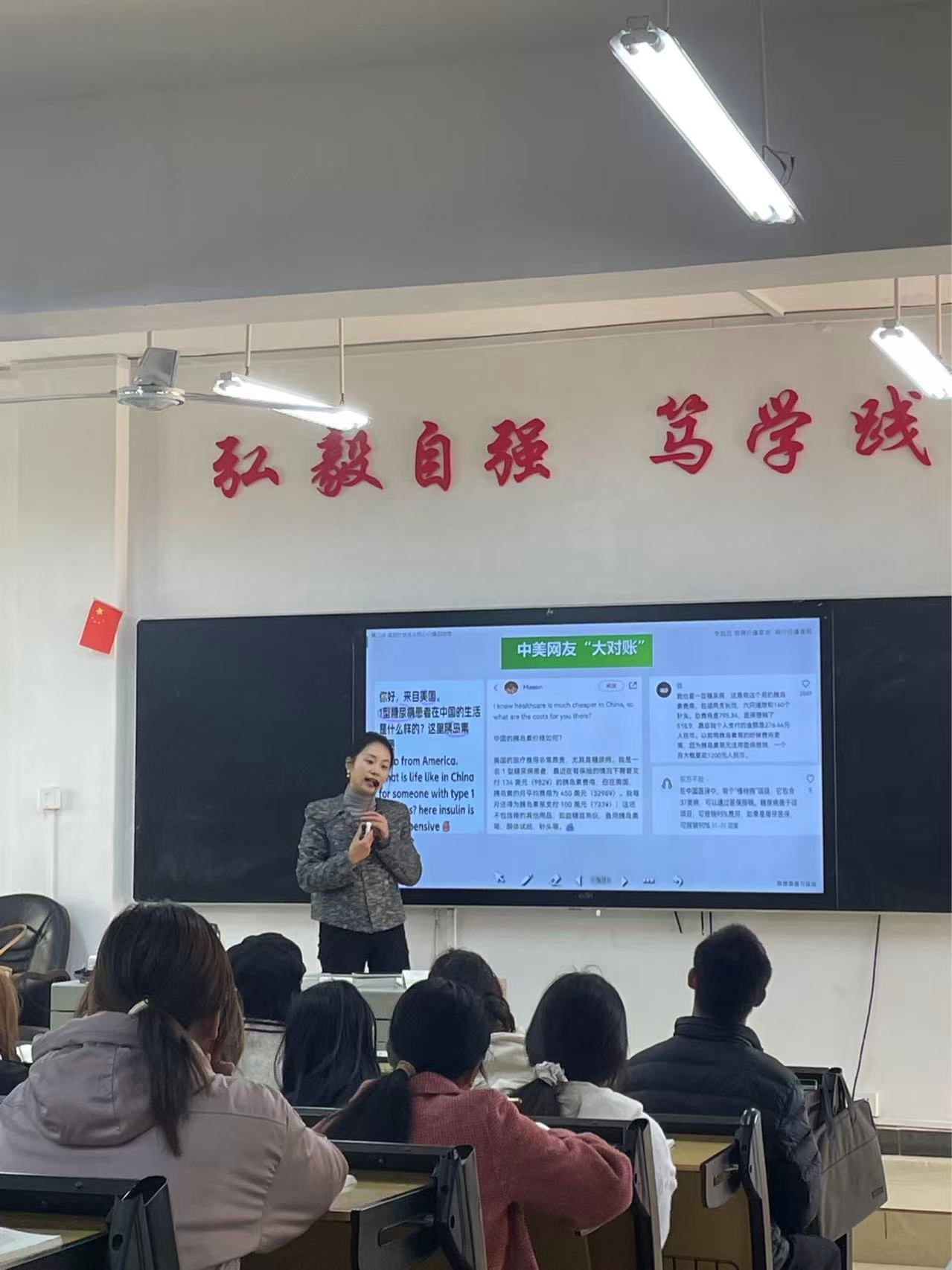 公开课上,冯婷婷老师结合药学院学生专业特点通过“漫画中的人物患了什么疾病”这一问题导入新课,极大吸引学生的兴趣。接着,又以“中美胰岛素的价格差”为案例,层层递进,讲解社会主义核心价值观的三大显著特征。在讲述知识点中,冯婷婷老师运用丰富案例讲解新知,积极与学生互动,现场氛围浓厚,收获学生的一致好评。