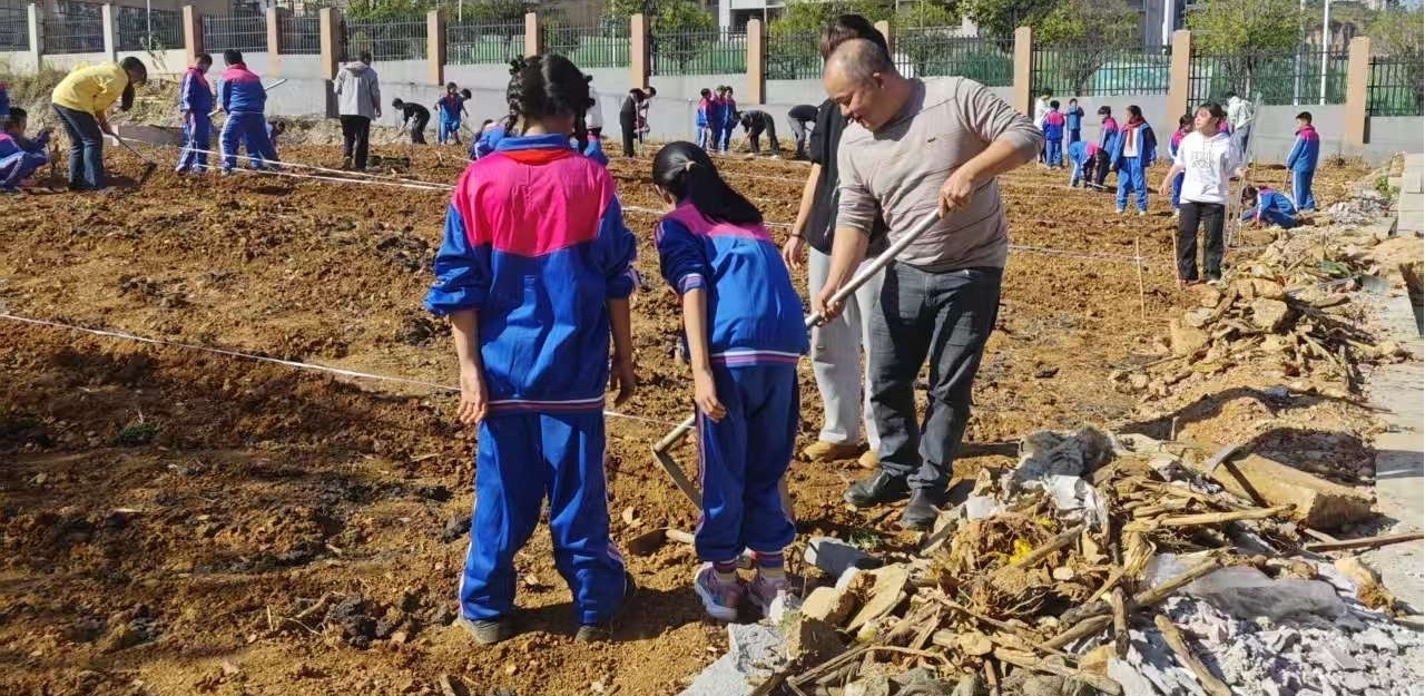 根据农学院与铜仁市第三十二小学党建联建工作安排,2025年10月28日下午,大手拉小手“青苗共育计划”在铜仁市第三十二小学的劳动教育实践基地正式启动。来自我院生态农业技术专业的16名大三学生与铜仁市第三十二小学48名五年级的学生携手结对,在专业教师的指导下共同完成了一场知识与汗水交织的油菜移栽实践课,生动诠释了劳动教育的独特魅力,展示了校际协同育人的具体实践,体现了高校服务社会的责任担当。