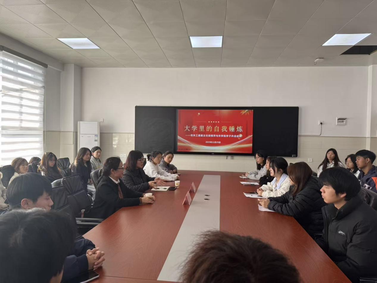 为深入贯彻落实习近平总书记对关心下一代工作的重要指示精神,充分发挥“五老”(老干部、老战士、老专家、老教师、老模范)在青年学生成长中的独特优势。2025年11月25日,农学院在515会议室开展了“大学生活里的自我锤炼”主题经验交流座谈会。本次活动特邀学校关工委副主任、离退休教师田银萍教授担任主讲,农学院党总支书记冯海鹰主持,农学院学生干部及各班学生代表参会。