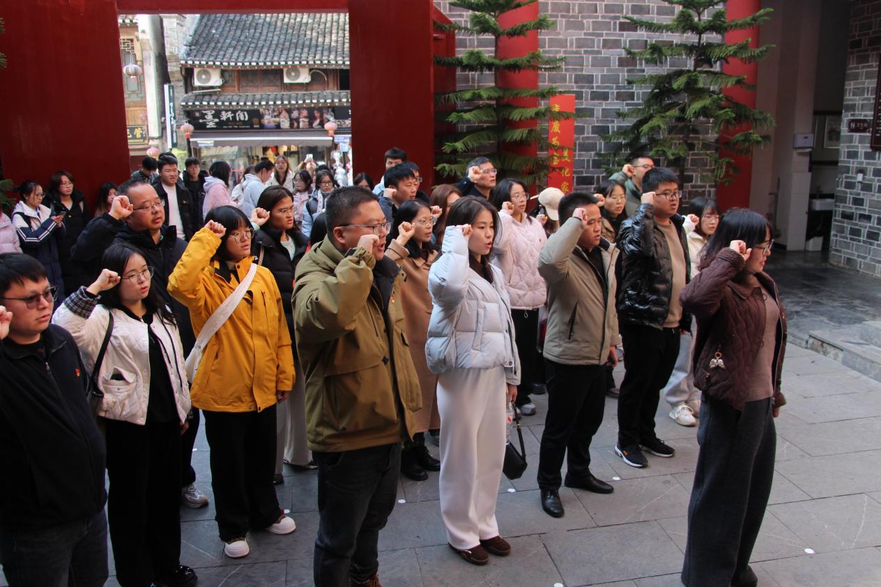 伴着冬日暖阳,大家精神饱满地抵达中南门古城。在周逸群烈士陈列馆中,党总支书记冯海鹰带领全体党员教师重温了入党誓词;陈列馆讲解员向我们全面讲解了周逸群烈士的革命事迹,让师生深刻感悟革命先辈不畏艰难、不怕牺牲和甘于奉献的红色精神。在铜仁市博物馆,讲解员向我们详细地介绍了铜仁市的历史文化、红色文化和地域特色文化。