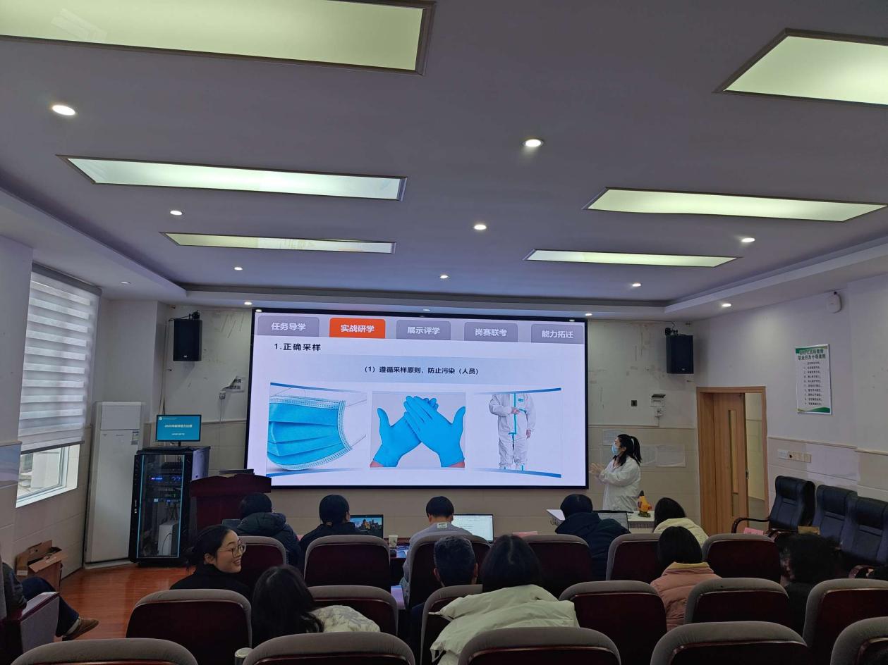 比赛现场,设施农业与装备专业团队以“设施土壤环境监测”为主线,运用土壤传感器连接联网模块实时调取数据,体现了信息化设备与农业生产的深度融合。畜牧兽医专业教学团队围绕“公猪舍日常操作流程”这一生产环节,通过教师引导、学生小组讨论,明晰公猪舍日常操作的规范流程。茶叶生产与加工技术专业团队则围绕“茶树的一生”,系统地讲解了不同阶段茶树的特征。动物医学专业团队聚焦沙门氏菌的实验室诊断,通过案例分析、教师示教等方式来规范沙门氏菌的诊断。各团队在教学展示中,灵活运用项目教学、案例教学、情境教学等方法,依托虚拟仿真平台、生产实景视频、模拟操作软件等信息化资源,充分彰显了“学生主体、能力本位、产教融合”的教学理念,现场研讨氛围浓厚。