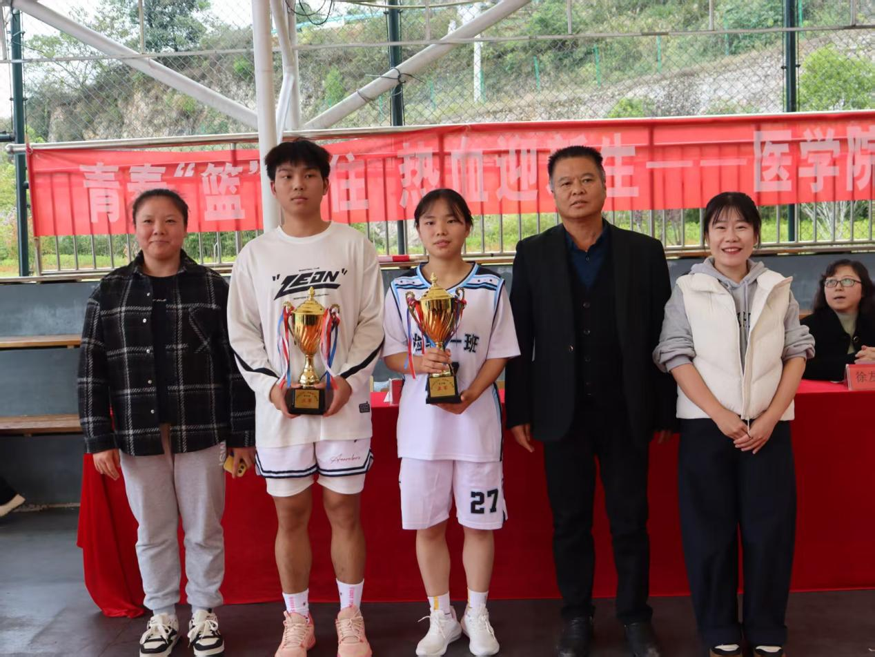 赛场上,球员们身姿矫健、攻防有序,投篮与进球一气呵成,每一次默契配合都引发全场欢呼。女子组中,243康复三班凭借稳定发挥与顽强斗志蝉联冠军,253检验一班奋勇追赶,最终获得亚军;男子组较量同样精彩,243临床四班一路过关斩将,成功摘得冠军奖杯,243临床一班则以出色表现荣获亚军。