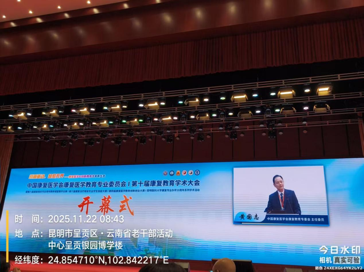 为深化康复治疗技术专业内涵建设,推动职业教育与行业发展同频共振,11月22日至23日,中国康复医学会康复医学教育专业委员会主办的第十届康复教育学术大会在昆明召开,我院医学院书记、康复治疗技术专业教师胡国兵与康复专业教师张薇共同参会。本次会议以“创新驱动,智愈无界——康复医学AI创新教育改革新生态”为主题,设主论坛及康复治疗、物理治疗、作业治疗等10余个分论坛,聚焦学科建设、人才培养、技术创新等核心议题,为康复教育高质量发展提供了前沿思路。
