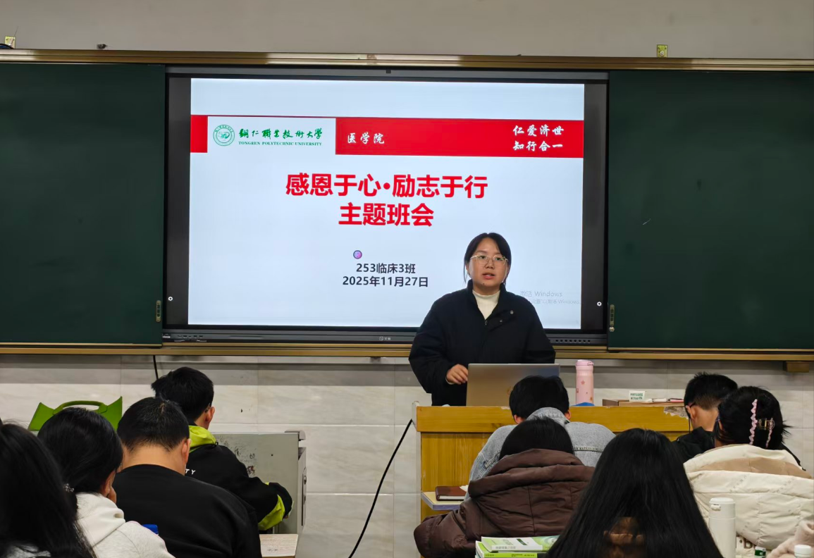 为提升资助育人实效,强化学生感恩意识与责任担当,近日,在辅导员(班主任)组织下,医学院在校班级全覆盖开展“感恩于心·励志于行”主题班会,确保全体受奖助学生100%参与。
