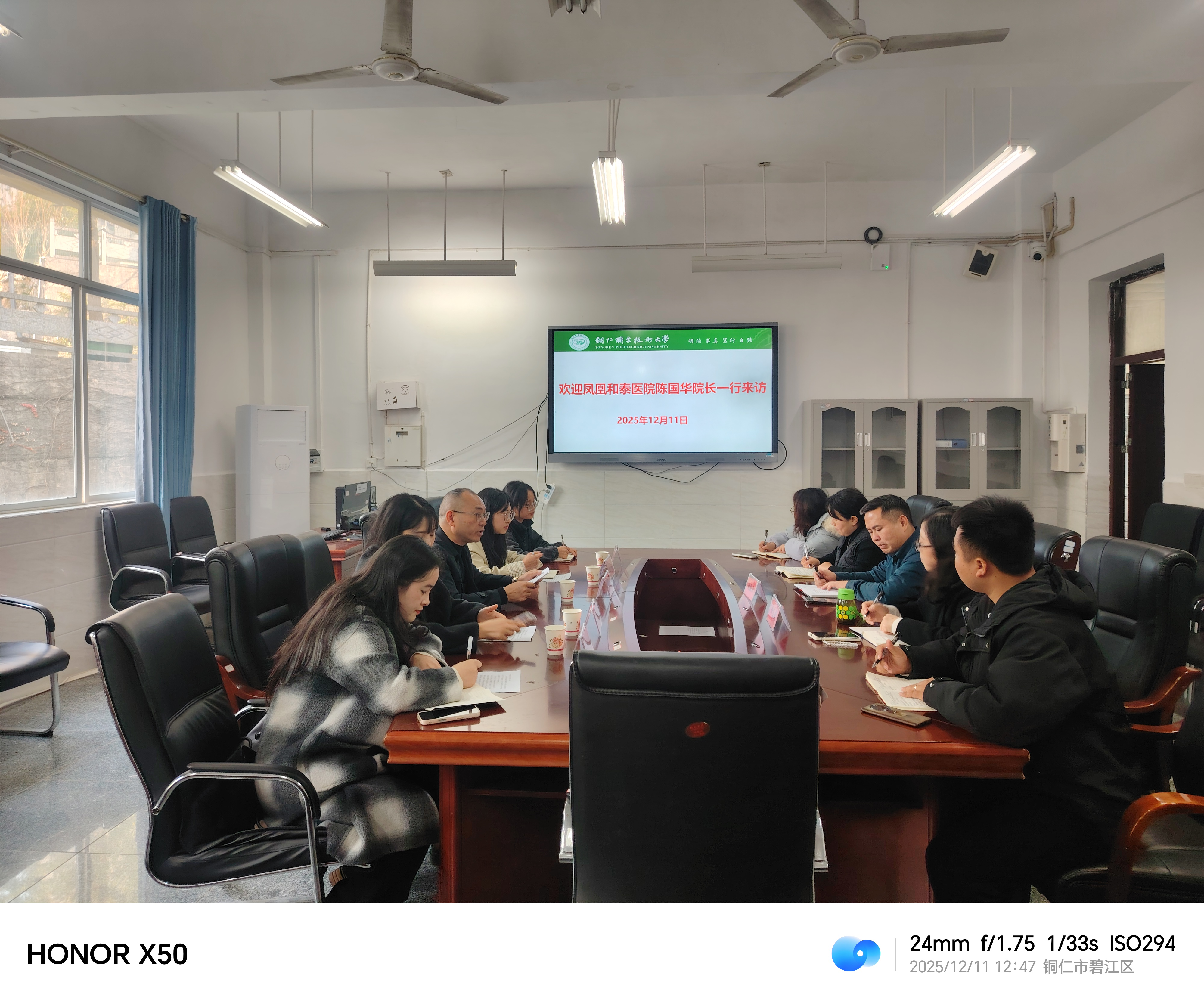 12月11日,凤凰县和泰医院院长、凤凰县阳光康复中心负责人陈国华携和泰医院共青团支部书记王志林、阳光康复中心主任田晓晓一行到我校洽谈校企合作事宜,医学院党总支书记胡国兵、院长徐友英、学生科科长杨雪、康复治疗技术专业教研室主任包静等共同出席。
