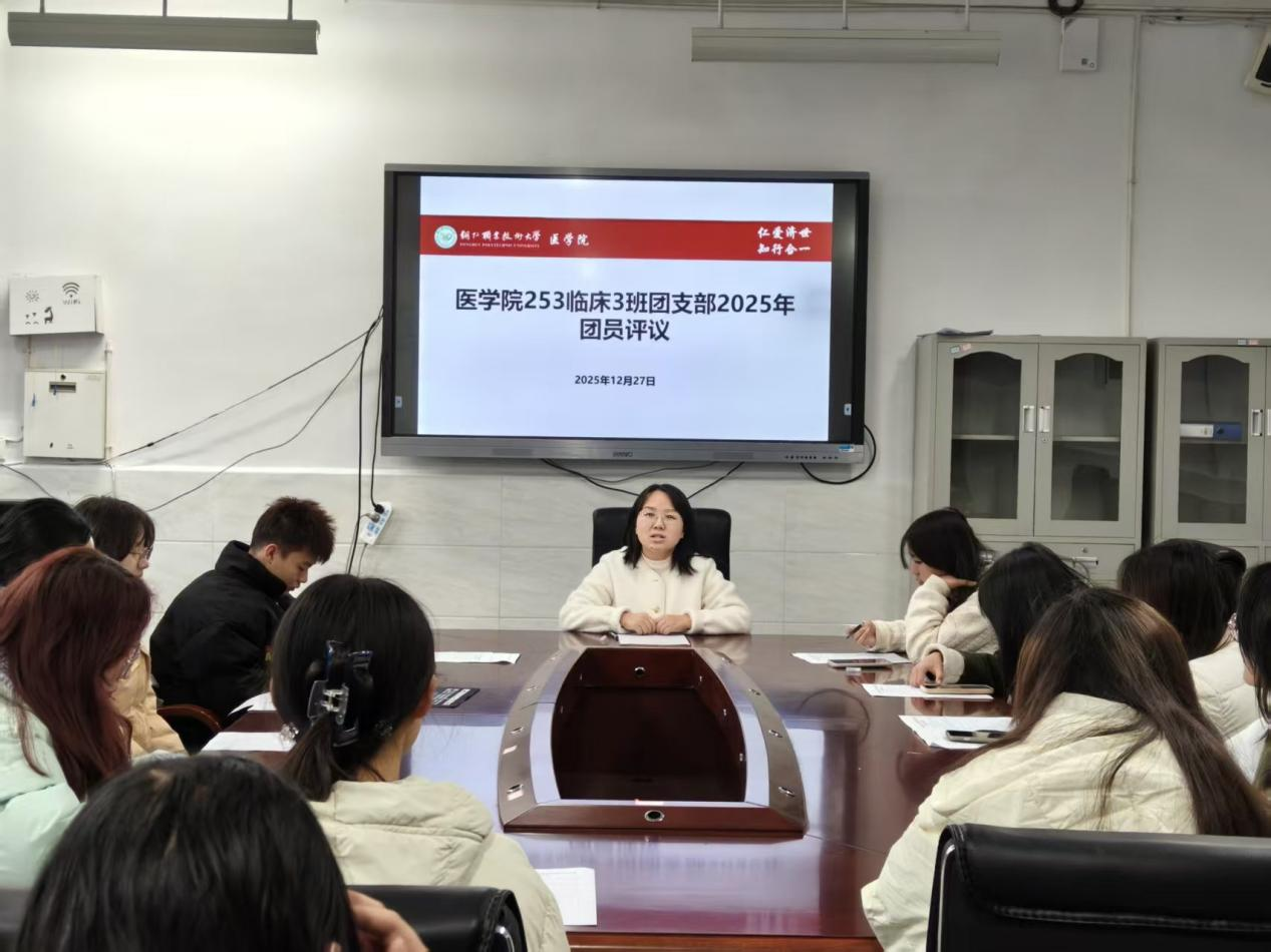 近日,我院253临床3班团支部召开2025年度组织生活会暨团员教育评议会。会议紧扣“强化纪律意识、发挥模范作用”主题,通过会前学习、对照检视、民主评议等环节,引导团员对标先进、查找不足、明确方向。
