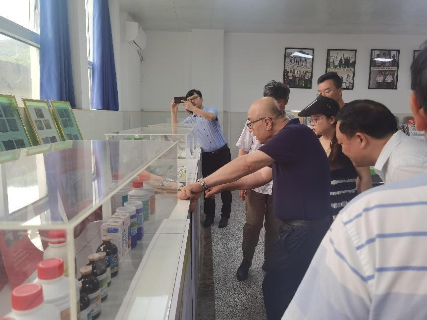 大卫---雅科夫教授(左2)一行在陈列室观看研发的中兽药产品