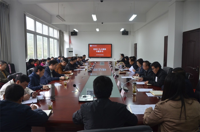 10月25日下午,我院在行政楼三楼会议室召开党委(扩大)会议专题学习党的十九大相关精神。学院党委书记杨春光,党委副书记、院长张景春,党委副书记覃礼涛,党委委员、纪委书记雷国平,党委委员、副院长杨政水、张命华、陈荣强,副院长徐联,党委委员、工会主席强寿荣出席会议,各二级学院、部门主要负责人参加会议。市委第六巡察组组长丁建忠及全体组员指导并参加会议。会议由杨春光主持。