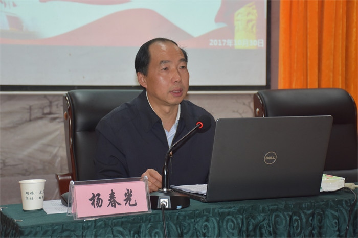 杨春光指出,十九大的召开,对新时代下全面从严治党提出了新要求,习近平总书记对“全面从严治党是推进党的建设新的伟大工程的必然要求”的论断直接把全面从严治党思想作为党的建设重要论述的一条主线,为当前和今后党的建设指明了方向、开辟了道路,标志着从严治党开始进入新阶段,在党的建设历史上树起新的里程碑。这一思想顺应了执政党建设的新要求,开创了治党兴党的大格局,为党在新形势下应对考验、化解风险提供了强大思想武器和行动纲领,是推进党的建设新的伟大工程的根本遵循。杨春光说,全面从严治党思想是党肩负执政的历史使命、防止蜕化变质的可靠保障,是党在新形势下应对考验、化解风险的思想武器和行动纲领,使管党治党有了更加符合现实需要的科学依据,是党中央从严治党决心坚定的重要标志。