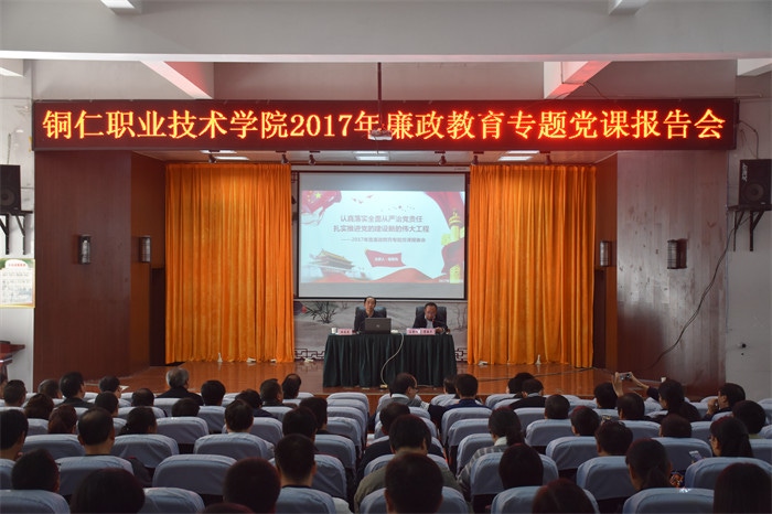 10月30日下午,我院在寅亮厅举行2017年廉政教育专题党课报告会。学院党委书记杨春光出席会议,党委委员、纪委书记雷国平主持会议。各二级学院、部门负责人以及教职工代表、教师党员、学生党员参会。