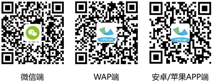 ◆移动端使用方法:通过手机扫描下方二维码,关注微信公众号使用VIPExam考试库微信端,或下载APP使用。请注意:使用移动端时,须先通过校园网IP范围之内的电脑注册账户(该账户将自动升级为不限IP的移动端账户),并以该账户登录移动端。