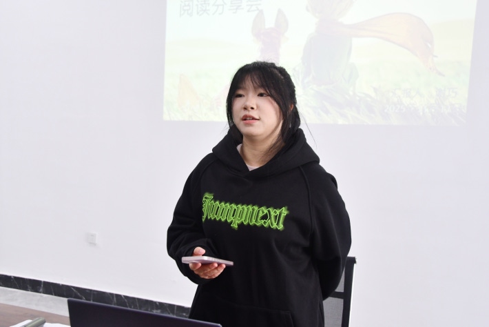 在读书分享环节,谢巧同学从 “孤独与连接、爱与责任、初心与成长” 三个维度解读《小王子》,提醒大家 “用心才能看见本质”;唐春熠同学分享了《哈利波特》,希望大家都能拥有自己的“魔法人生”;杨冰同学分享《我与地坛》,结合史铁生的苦难人生,传递 “接纳不完美,向光而生” 的生命力量;王海欣同学解读《病隙随笔》,提炼 “生命的意义在于内心建设” 的深刻感悟;杨荣同学分享《活着》,通过徐福贵的坎坷一生,诠释 “活着本身就是意义” 的人生哲思。同学们的分享真挚动人,让在场师生在文字共鸣中收获心灵启迪。