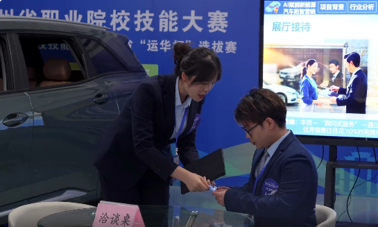 此次比赛紧扣数字经济与汽车产业转型需求,赛项以新能源与智能网联汽车为背景,设置营销策划、新媒体推广、销售实战等模块,参赛学生综合运用数字化工具完成客户沟通、数据分析、方案设计与团队协作,全面展现汽车后市场服务人才的核心素养。备赛期间,指导教师团队制定了科学系统的训练方案,学生团队刻苦钻研、反复打磨技术细节。比赛中,三位选手沉着应对、精准操作,展现了扎实的理论功底与卓越的实操水平,赢得了评委的高度认可。