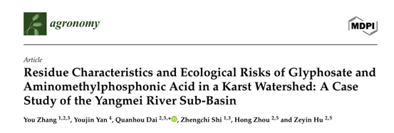 近日,我校工学院张友老师在SCI期刊《agronomy》(JCR分区Q1,中科院2区IF=3.4)上发表学术论文“Residue Characteristics and Ecological Risks of Glyphosate and Aminomethylphosphonic acid in a Karst Watershed: A Case Study of the Yangmei River Sub-basin”(喀斯特区草甘膦和氨甲基膦酸的残留特征及生态风险——以杨眉河小流域为例)的最新研究论文。