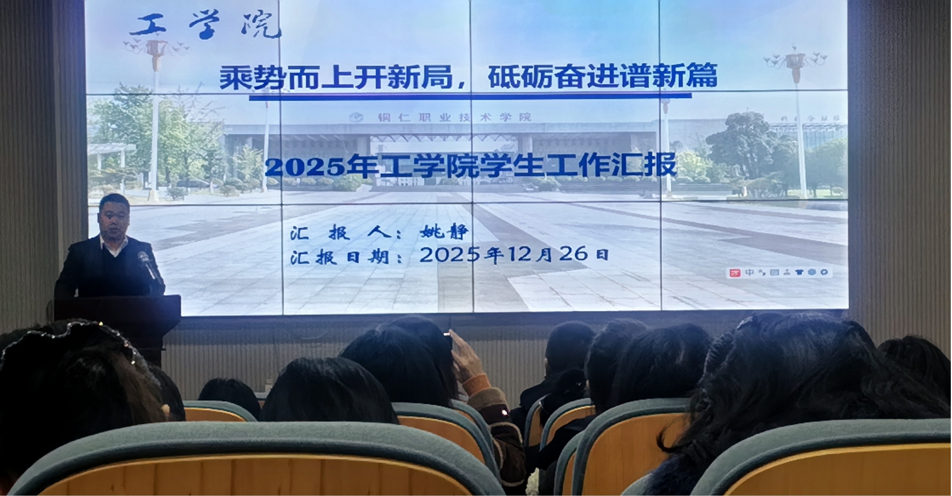 12 月 26 日,学校 2025 年学生思想教育及服务管理工作总结会在我校报告厅顺利召开。学校党委委员、副校长刘艳出席会议,各二级学院党总支书记、副书记及学生科科长,全体专职辅导员以及学生工作部全体成员参加会议。会议由学生工作部部长徐瑶主持。
